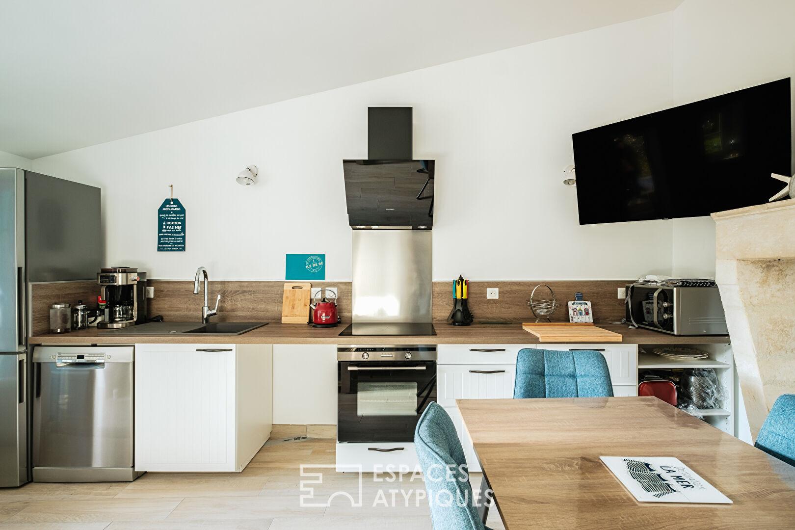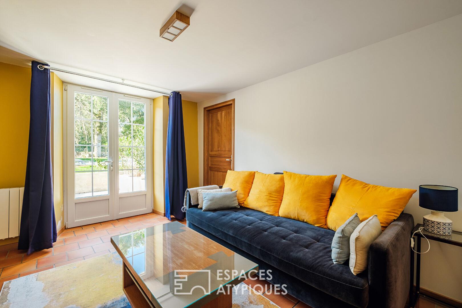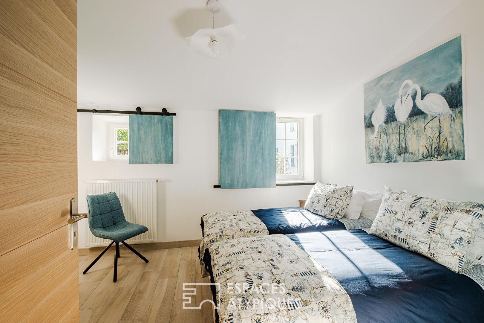 La propriété se distingue par son fort potentiel d’accueil et sa modularité. Elle dispose d’un studio indépendant ainsi que d’un gîte complet. Ce dernier, véritable maison à l’ambiance « bord de mer », propose un séjour-cuisine, deux chambres supplémentaires, une salle d’eau confortable et jouit de sa propre terrasse privative.