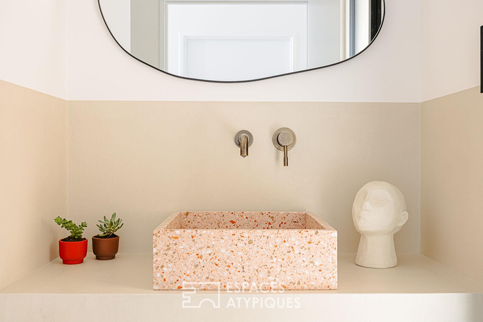 Le jardin se transforme en une oasis privée où l’eau et le ciel se rejoignent. La piscine à débordement dessine une ligne d’horizon parfaite, invitant à des moments de détente hors du temps.