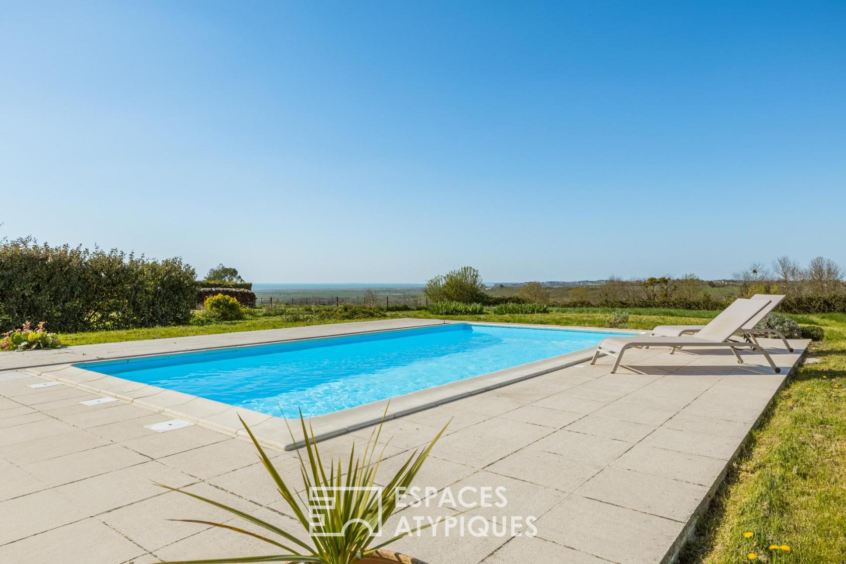 Édifiée sur un terrain d’un hectare et demi, la propriété se compose d’une habitation principale spacieuse et d’un moulin indépendant aménagé, d’une piscine et d’une vaste terrasse parfaitement exposée pour profiter du soleil de l’estuaire et de ses couchers de soleil majestueux.