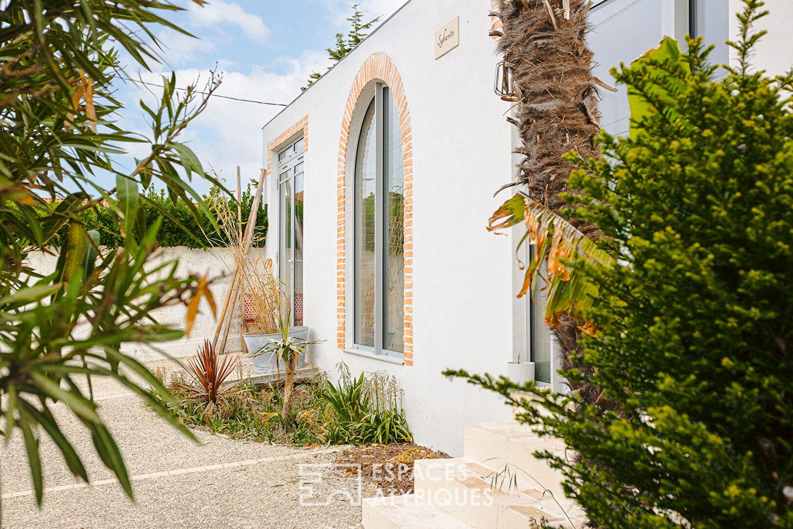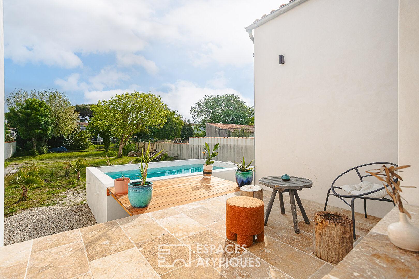 Idéalement située dans la prisée station balnéaire de Châtelaillon-Plage, à environ 350 mètres de l’océan, cette maison de 132 m2 habitables sur une agréable parcelle de 750 m2 dévoile une élégante rénovation alliant matériaux anciens et contemporains. Avec sa charmante façade ornée de briquettes, ce lieu de vie chaleureux offre un cadre apaisant en bord de mer où tout le quotidien peut se faire à pied.