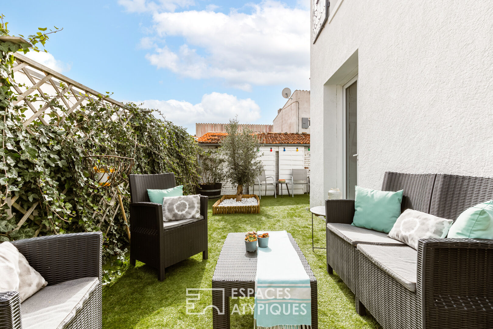 Côté extérieurs, un petit jardin configuré en L et deux terrasses viennent parfaire ce bien.