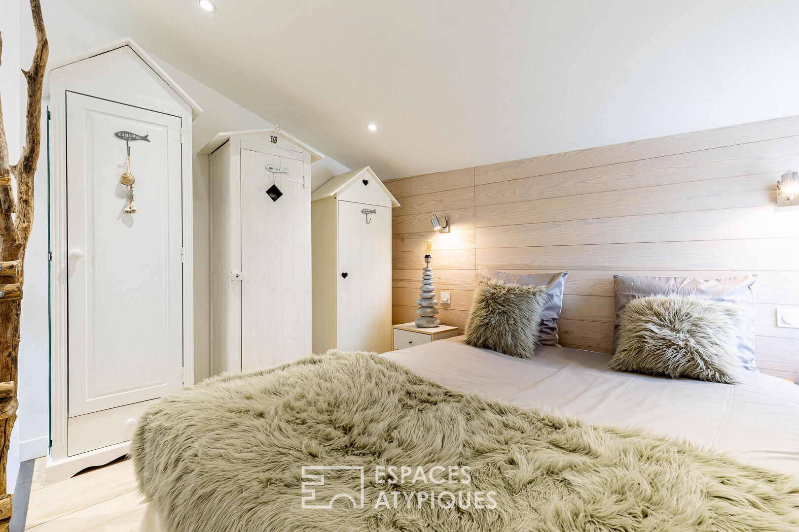 Lovée dans le dédale des petites venelles de la commune prisée du Château d’Oléron, cette maison bâtie en 2014 offre un cadre estival. Ses deux bâtisses sont idéales pour recevoir et profiter d’un environnement calme le temps des vacances.