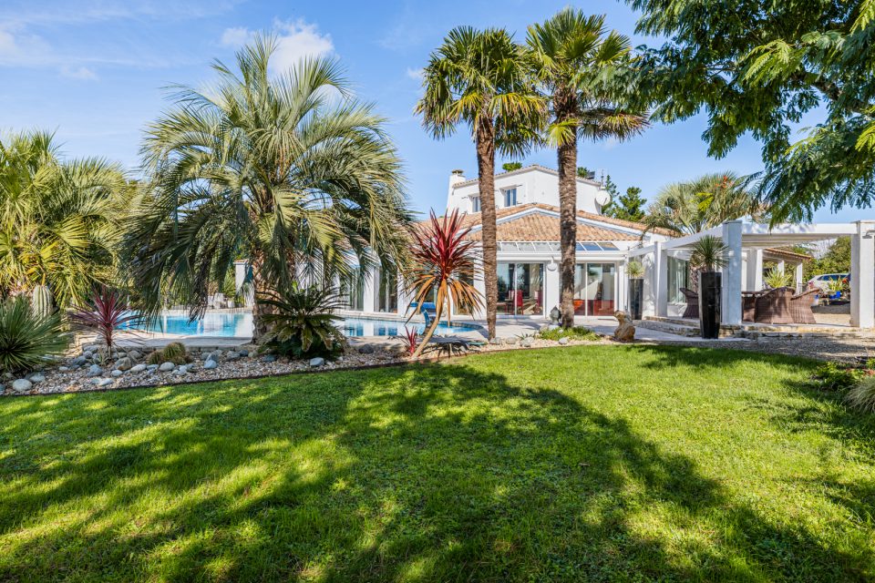 Deux bâtisses au caractère affirmé composent cet ensemble familial. La première villa, développant environ 218 m2 sur deux niveaux, propose au rez-de-chaussée une vaste terrasse accueillant un espace repas et un salon d’été, idéal pour les beaux jours.