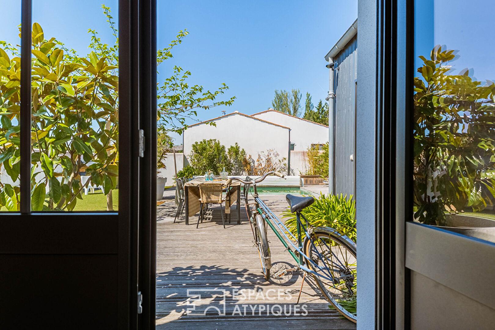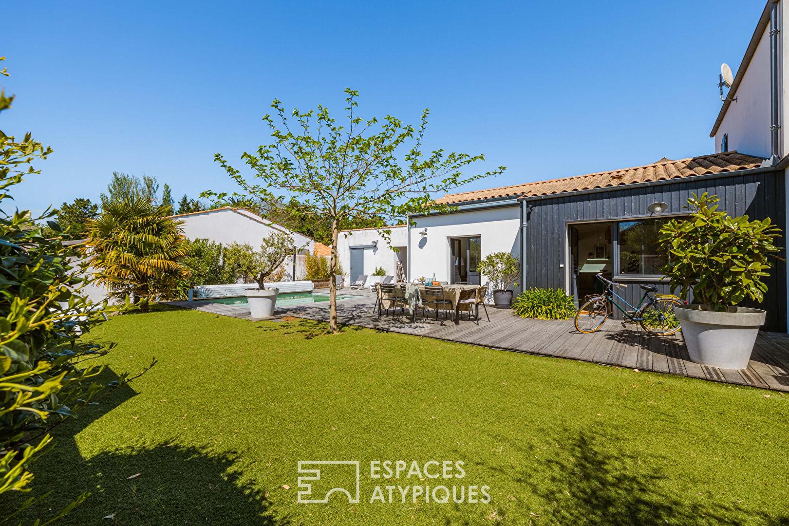 Au sud de l’île, sur la commune du Château, cette propriété confidentielle de 2016, d’environ 134 m² s’inscrit dans un écrin résidentiel préservé, où règnent silence, lumière et douceur de vivre. Sur une parcelle de 376 m², chaque instant semble ici s’étirer avec élégance, comme une parenthèse hors du temps.