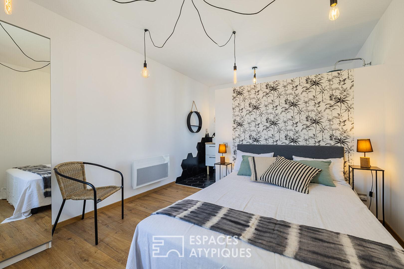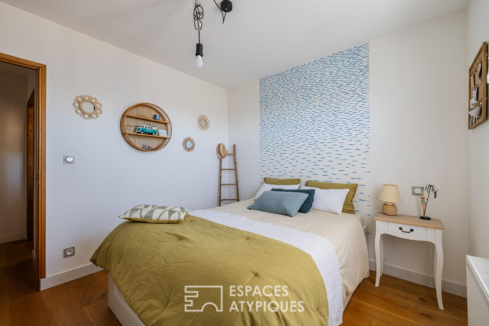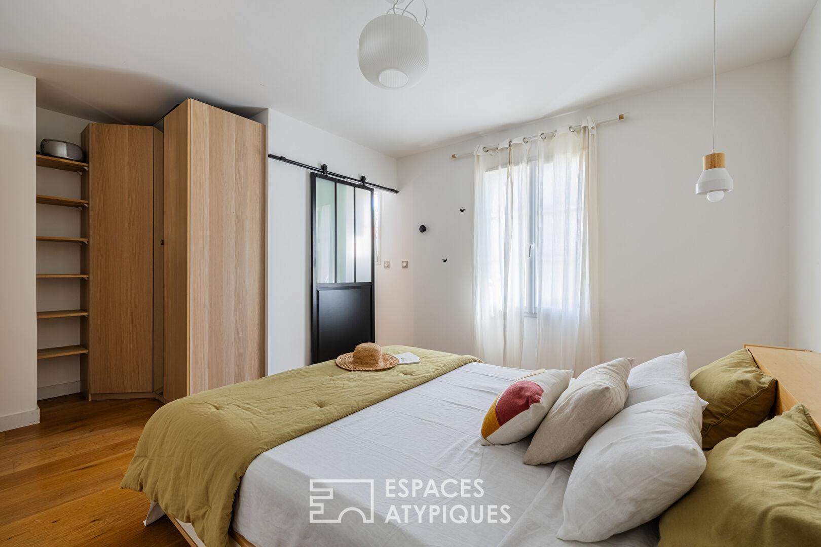 La suite parentale, pensée comme un véritable cocon, dévoile un dressing et une salle d’eau privative, invitant au repos et à l’intimité. Une chambre indépendante, avec accès dédié, salle d’eau et toilettes, accueille vos invités avec élégance, dans un esprit de maison d’hôtes confidentielle, offrant une autonomie appréciée.