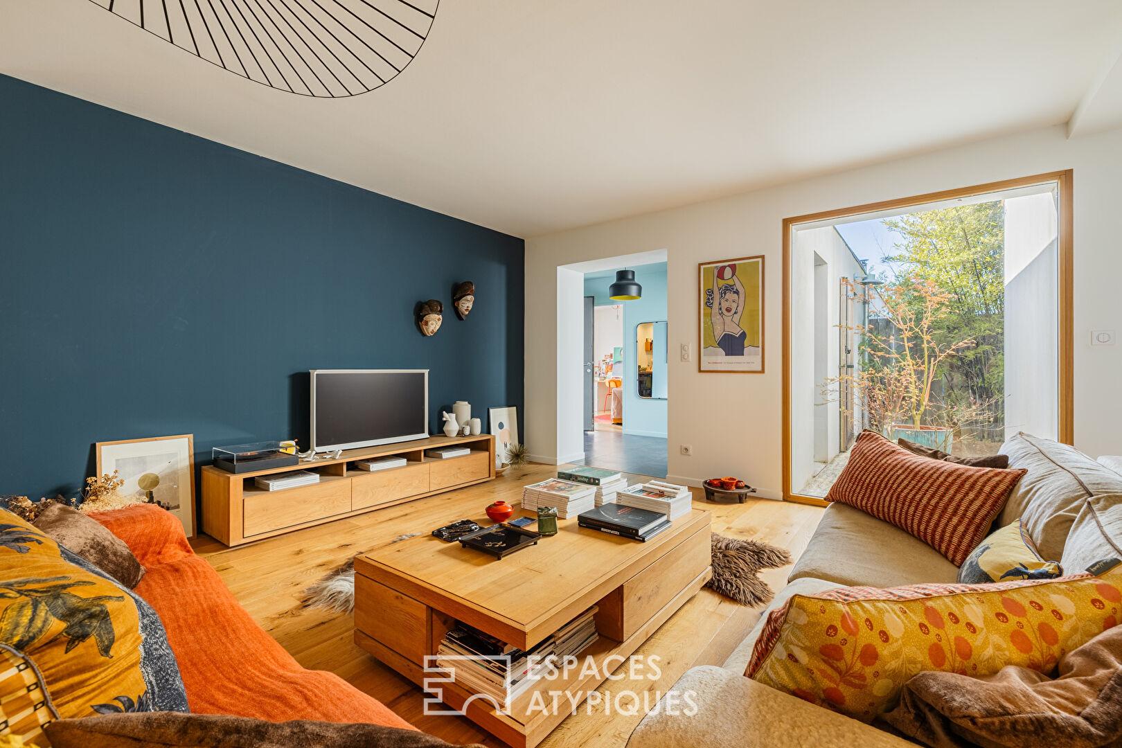 Dès l’entrée, un châssis vitré, véritable tableau vivant, offre une délicate perspective sur un espace végétalisé et introduit avec élégance l’atmosphère sereine des lieux.