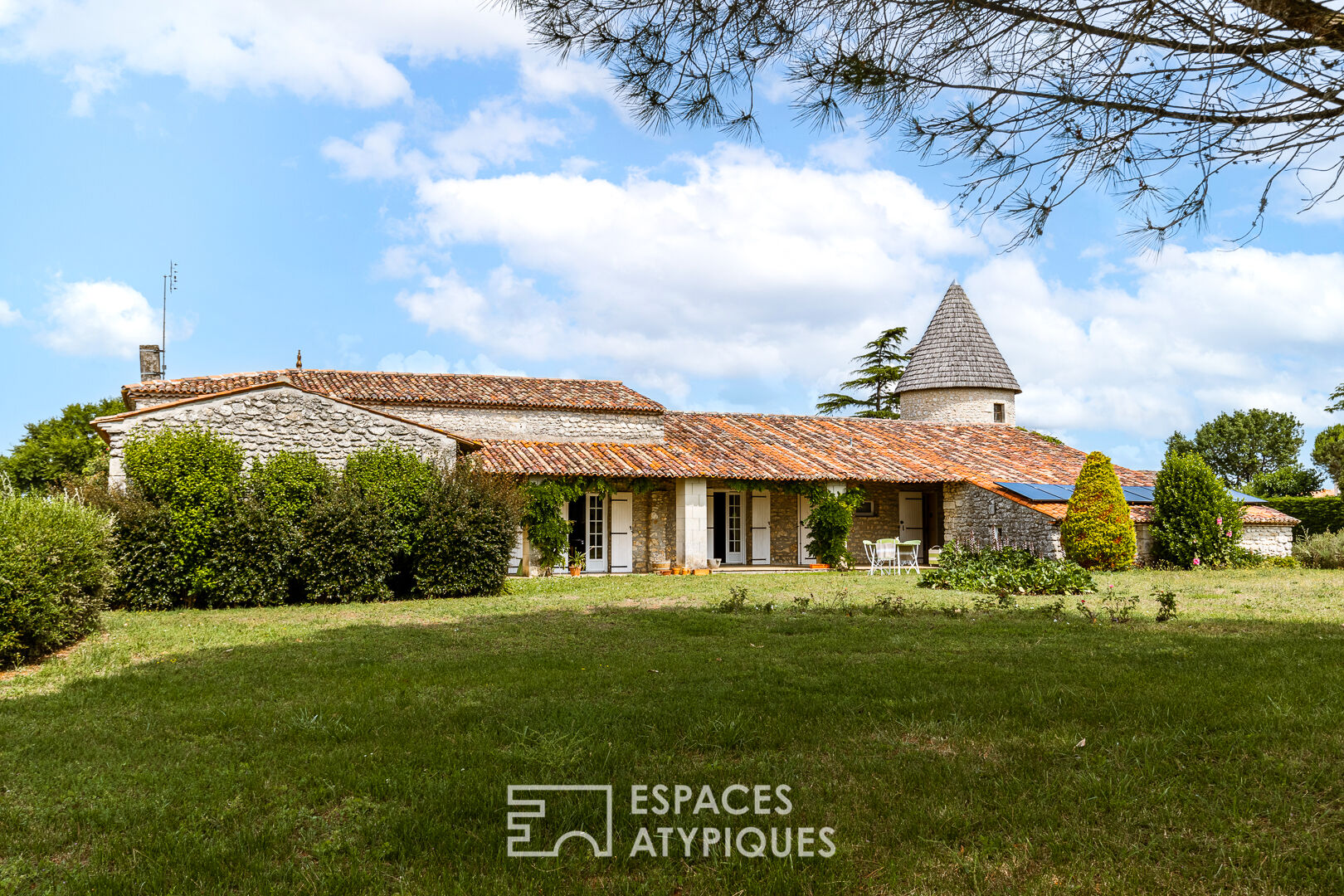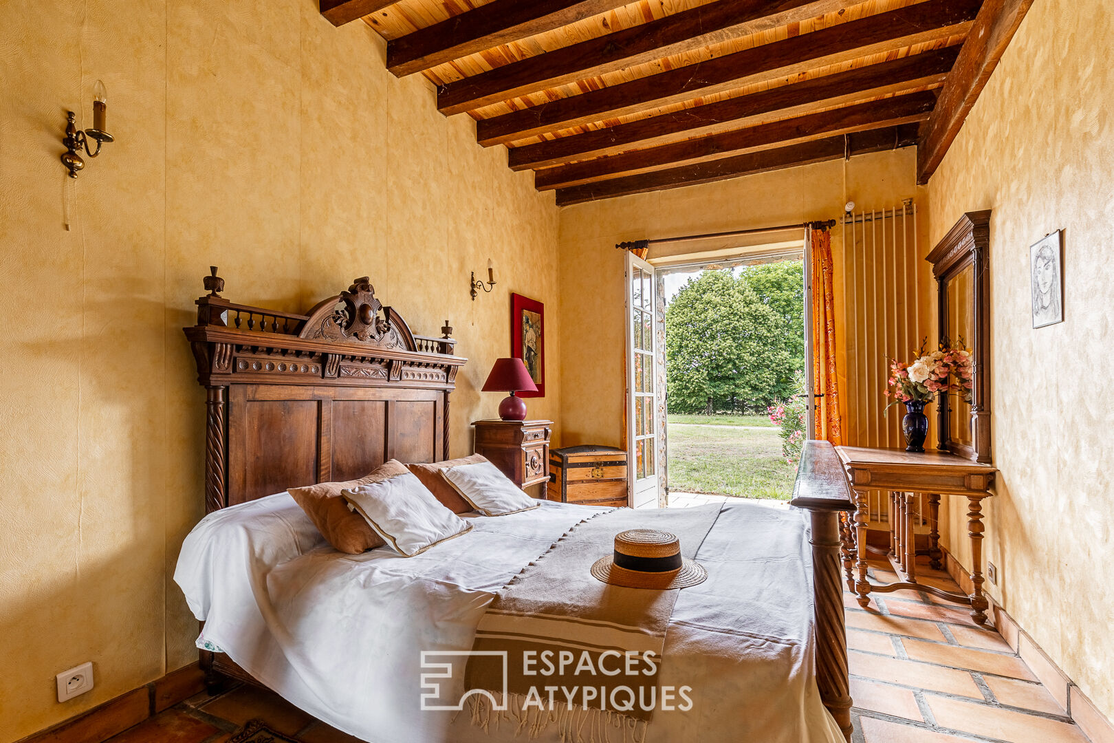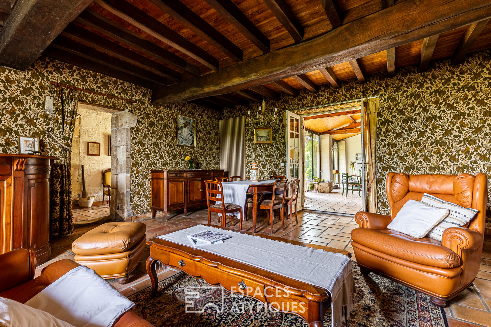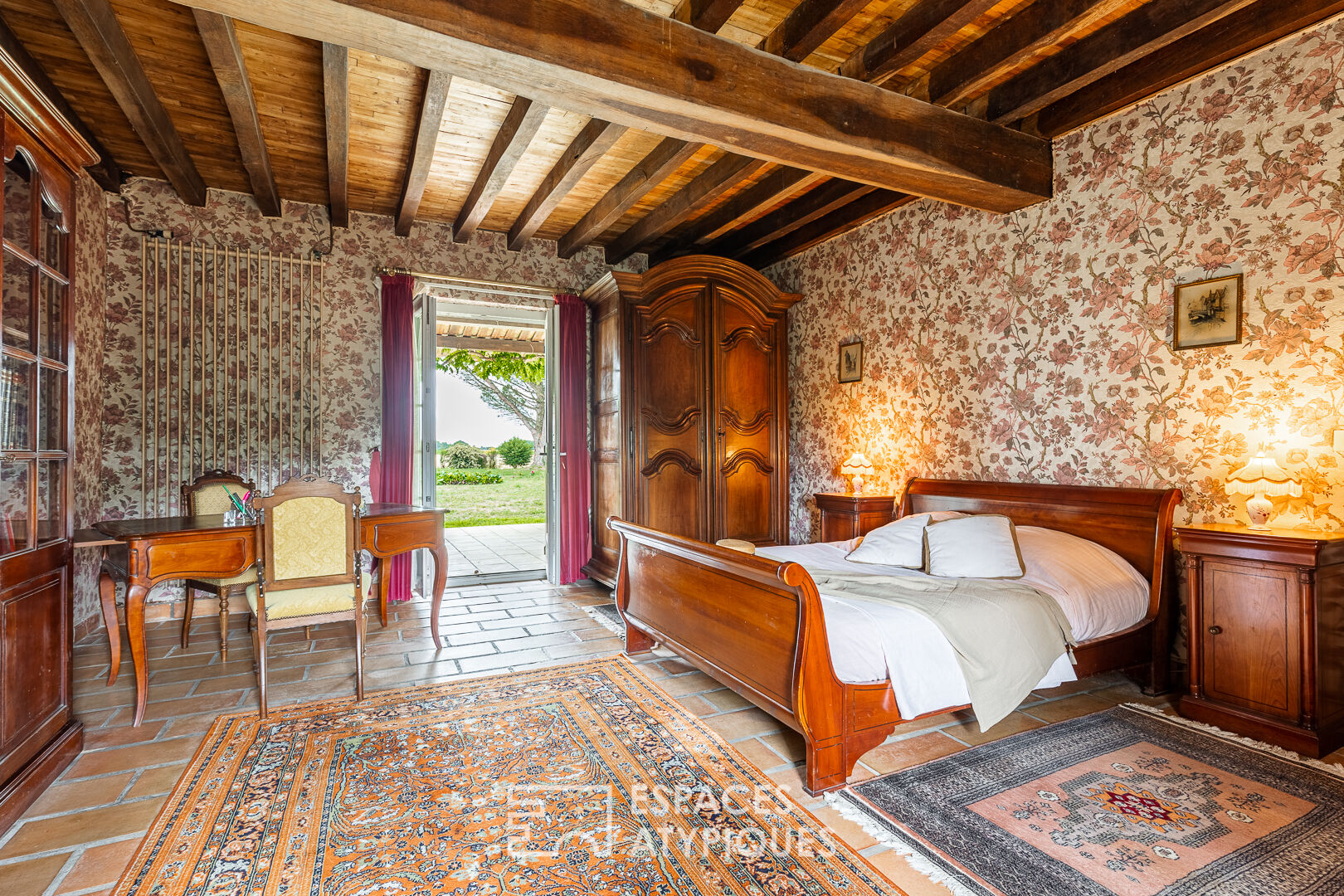 SOUS COMPROMIS DE VENTE – Située à seulement 20 minutes des plages, en sortie de village, cette propriété hors normes à l’authenticité marquée, bénéficie d’un cadre calme et privilégié avec son parc arboré sur près de 6000m2 offrant une vue dégagée sur la campagne environnante.