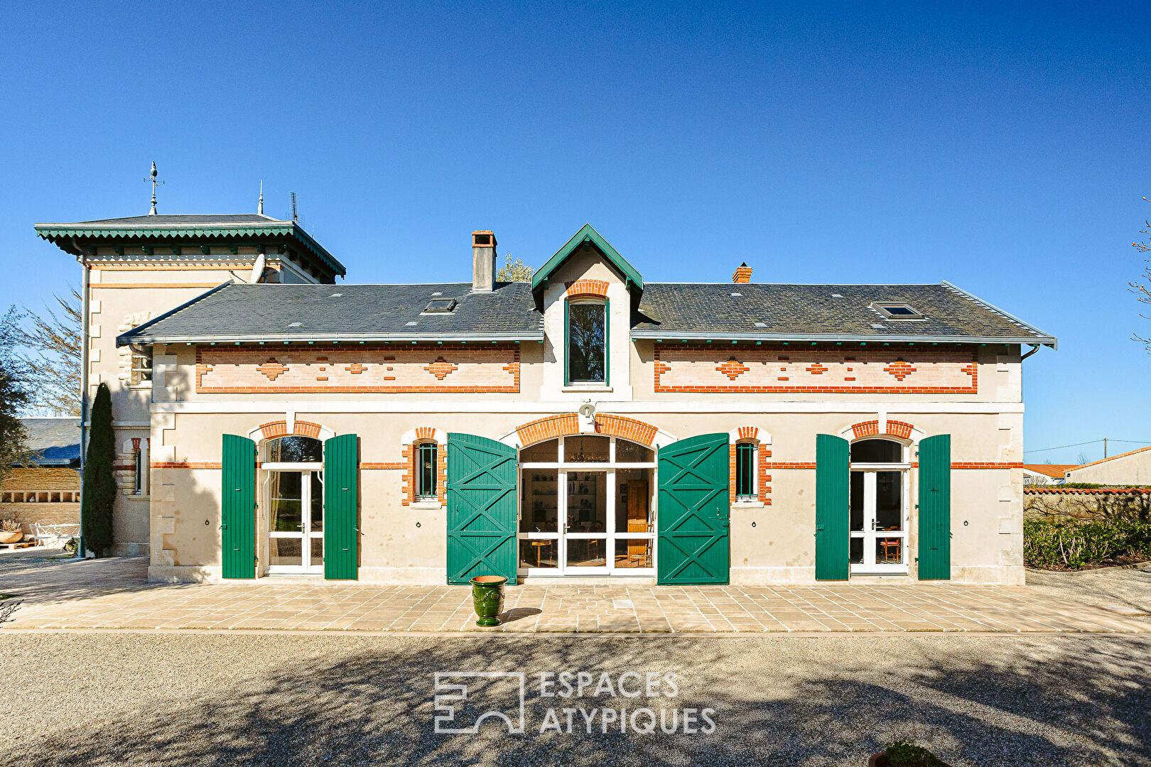 Au coeur d’un bourg historique, à seulement cinq kilomètres de Surgères et de ses commerces, ces anciennes écuries datant de 1912 ont été transformées en une élégante propriété de charme d’environ 188 m2 habitables. Implantée sur un parc arboré de près de 8 900 m2, cette demeure de caractère allie le charme de l’ancien au confort contemporain, avec piscine, larges terrasses et dépendances.