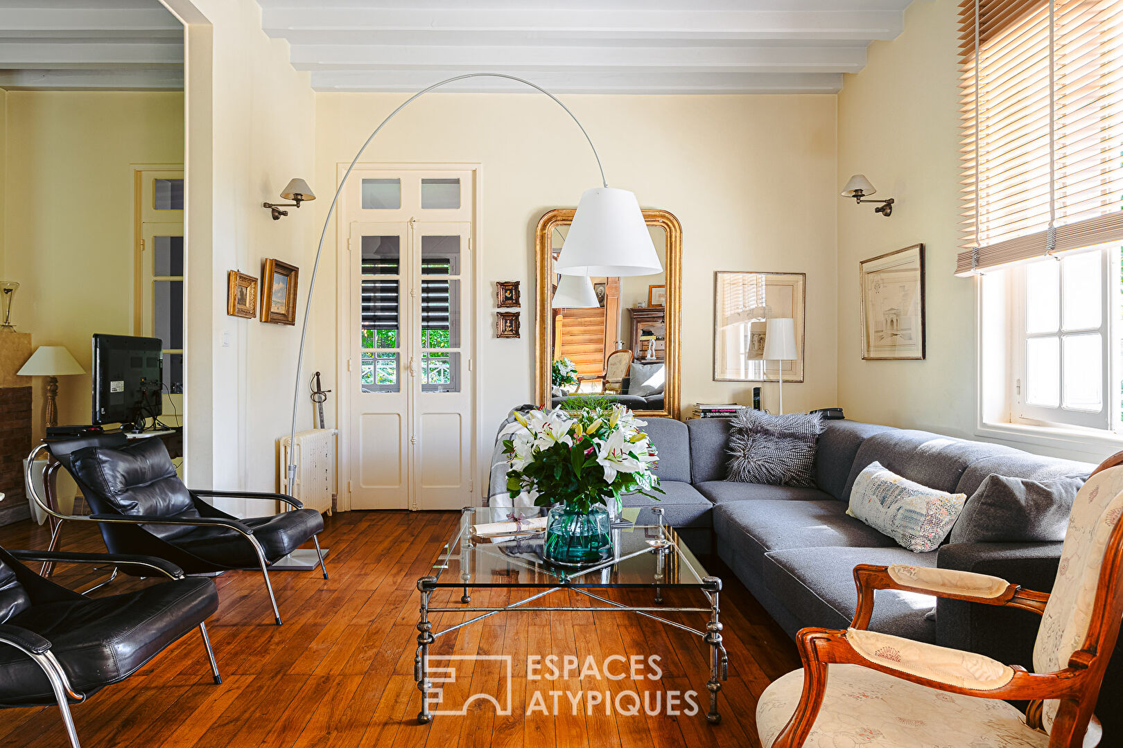 Située dans le centre-ville de Surgères, à moins de 500 mètres du château et du marché, cette maison au caractère des années 20 se distingue par son architecture atypique aux grands volumes, ses parquets massifs et son jardin arboré.