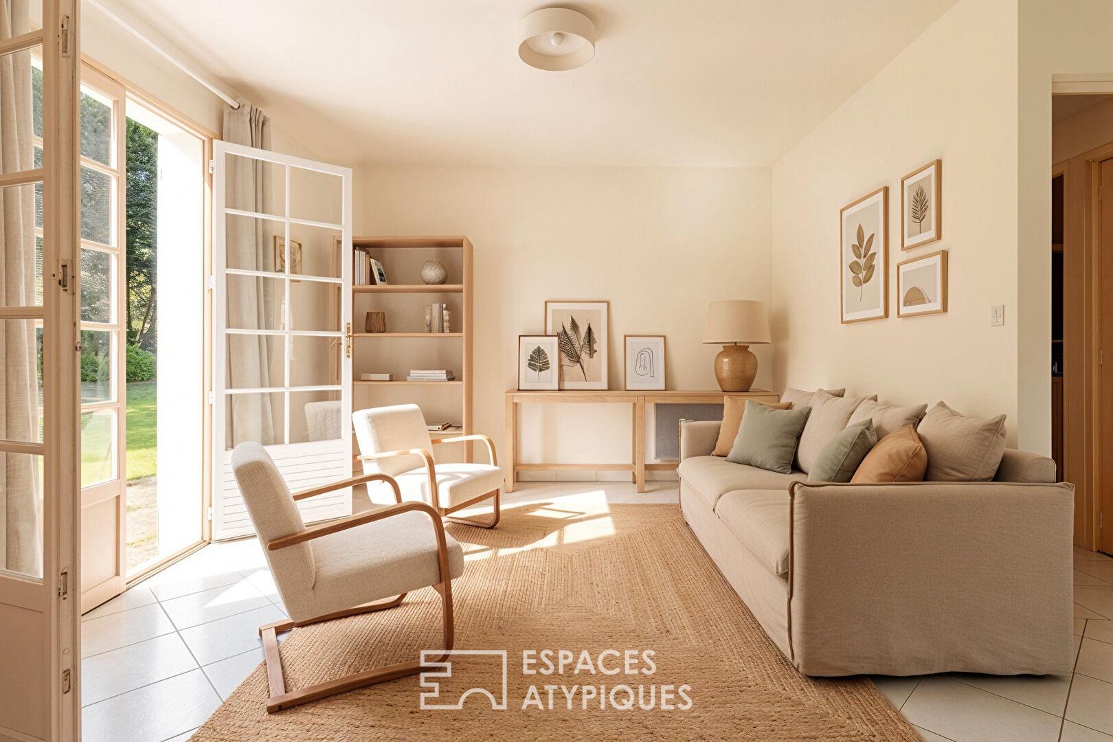 Véritable havre de paix, cette demeure s’ouvre avec une jolie pièce de vie traversante, baignée de clarté du matin au soir. L’agencement de plain-pied, fluide et convivial, dessert trois chambres.