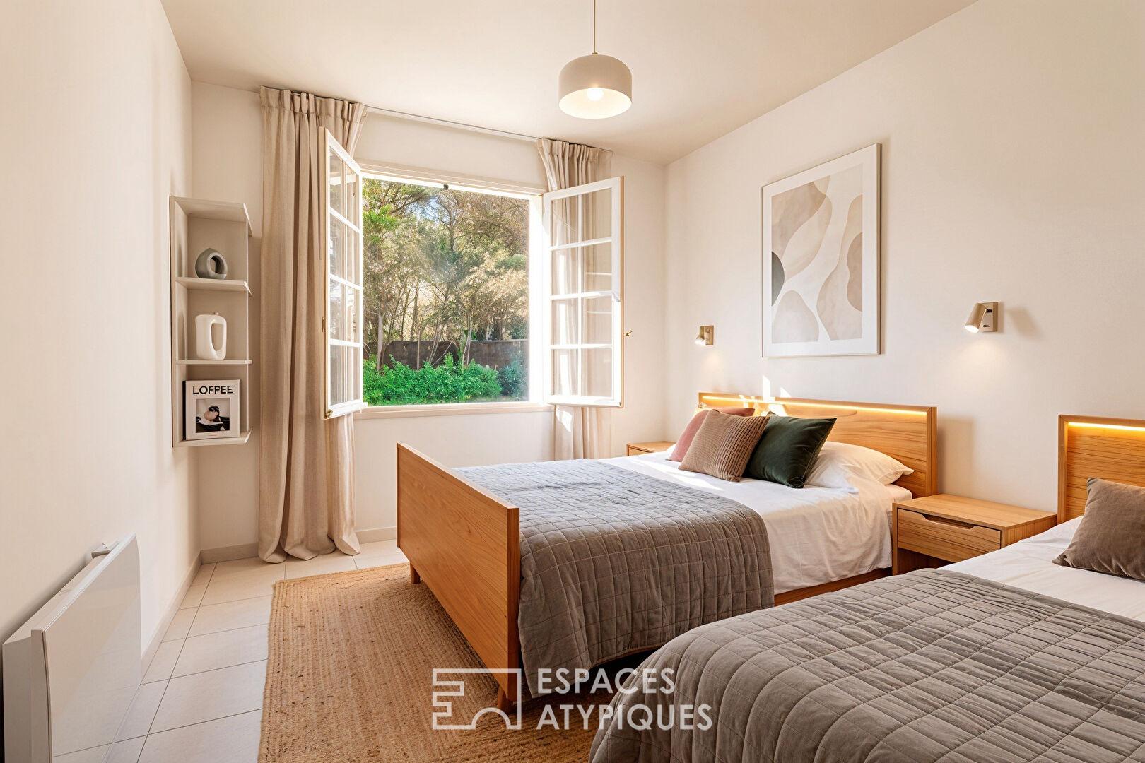 Située à quelques pas de la plage de la Patache, l’un des joyaux discrets de l’île, cette charmante maisonnette de plain-pied se dévoile avec délicatesse. Ici, le luxe s’exprime avec simplicité, dans la lumière, l’espace et la proximité immédiate d’eaux cristallines.