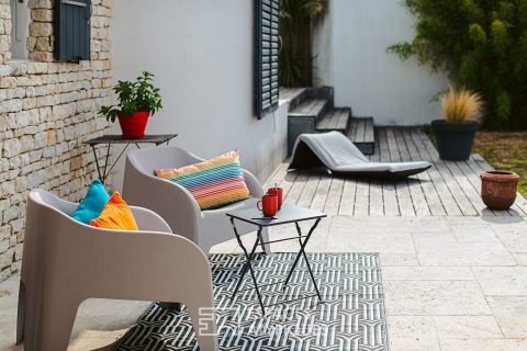 Attenant, un second patio permet de disposer d’un espace extérieur supplémentaire plus ombragé.