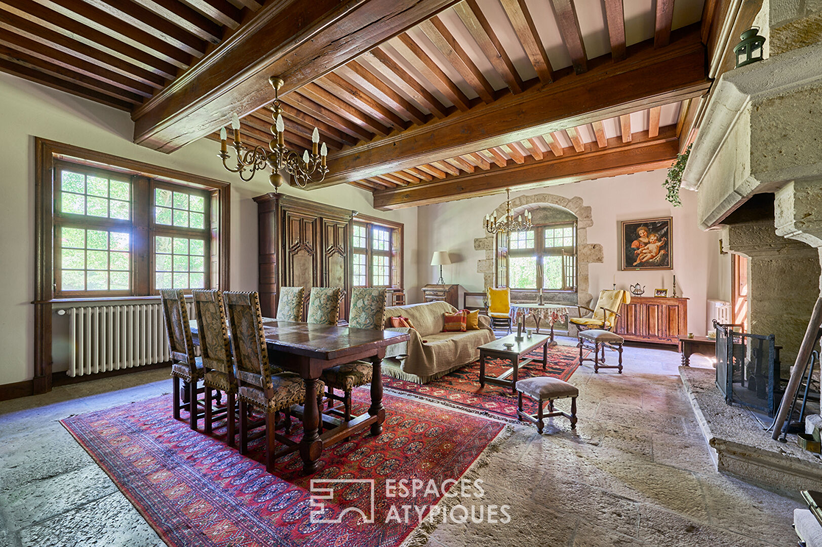Dés l’entrée le ton est donné: les pierres apparentes, les plafonds à à la française, les fenêtres à meneau avec ses volets intérieurs, sont autant d’éléments qui la définissent et qui lui donnent son cachet remarquable.