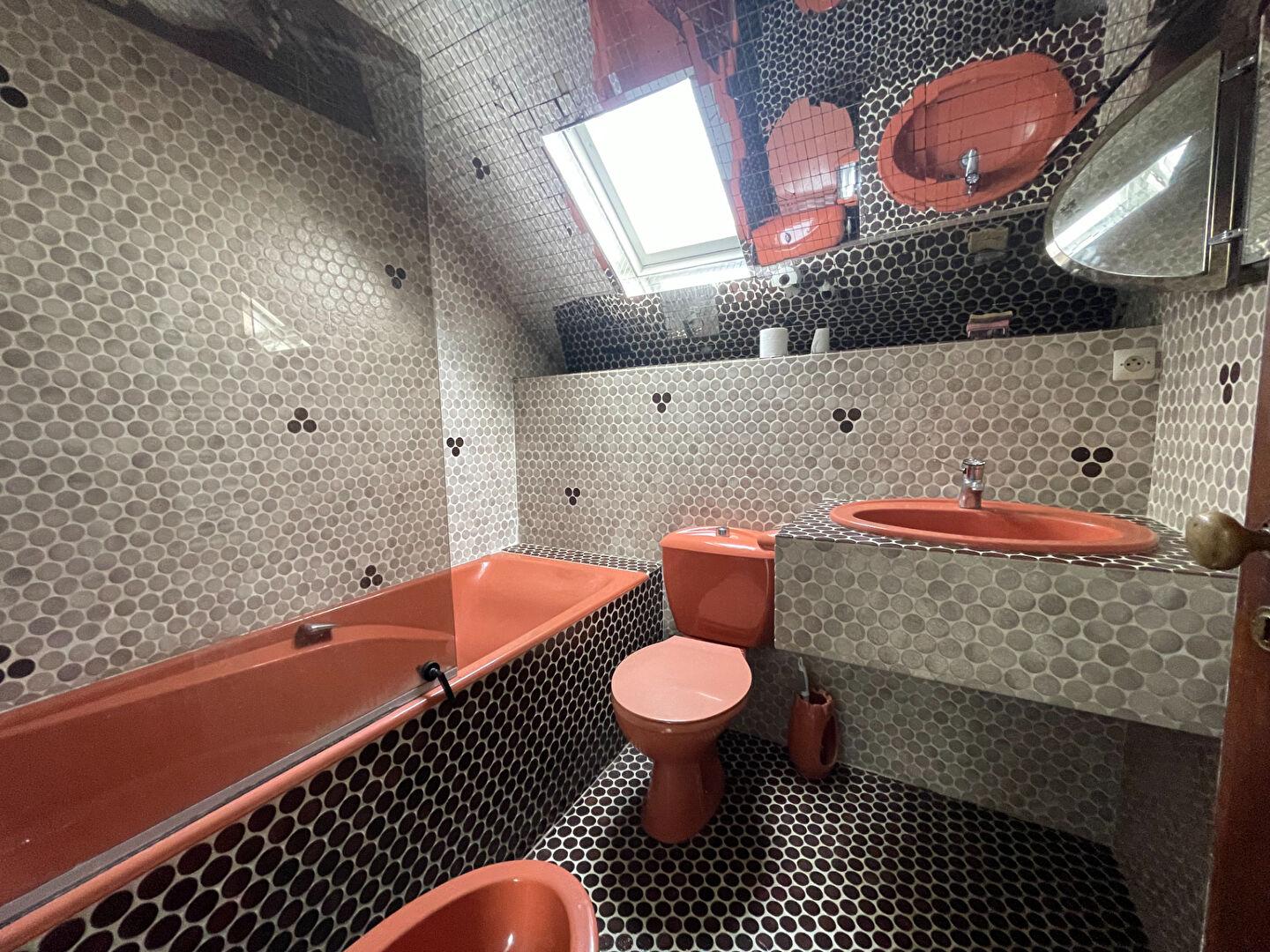L’escalier en bois nous laisse découvrir l’étage, doté de 3 chambres dont deux équipées de grands placards , ainsi qu’une salle de bain Vintage avec WC.