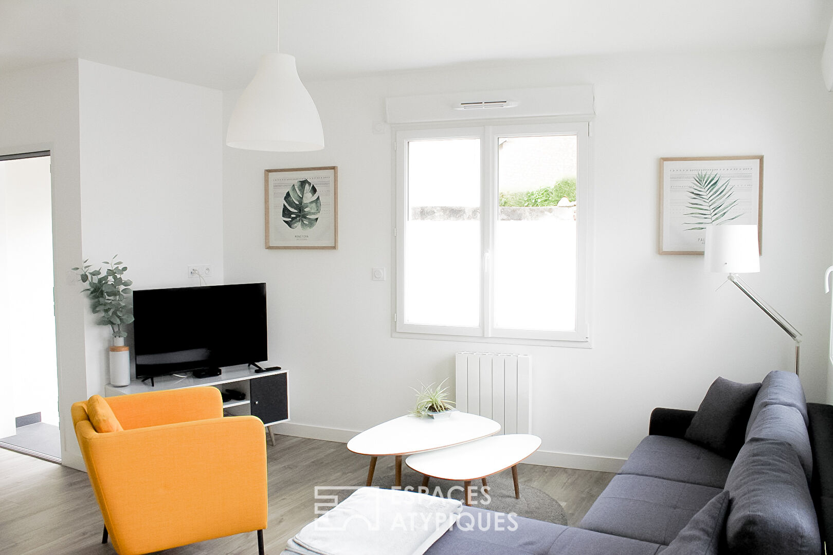 Le premier appartement dispose d’un joli jardin avec terrasse en bois d’une surface d’environ 63 m2 avec ses deux chambres, sa salle d’eau et sa lumineuse pièce de vie. Tous ces différents espaces vous raviront par leur décoration moderne et épurée.