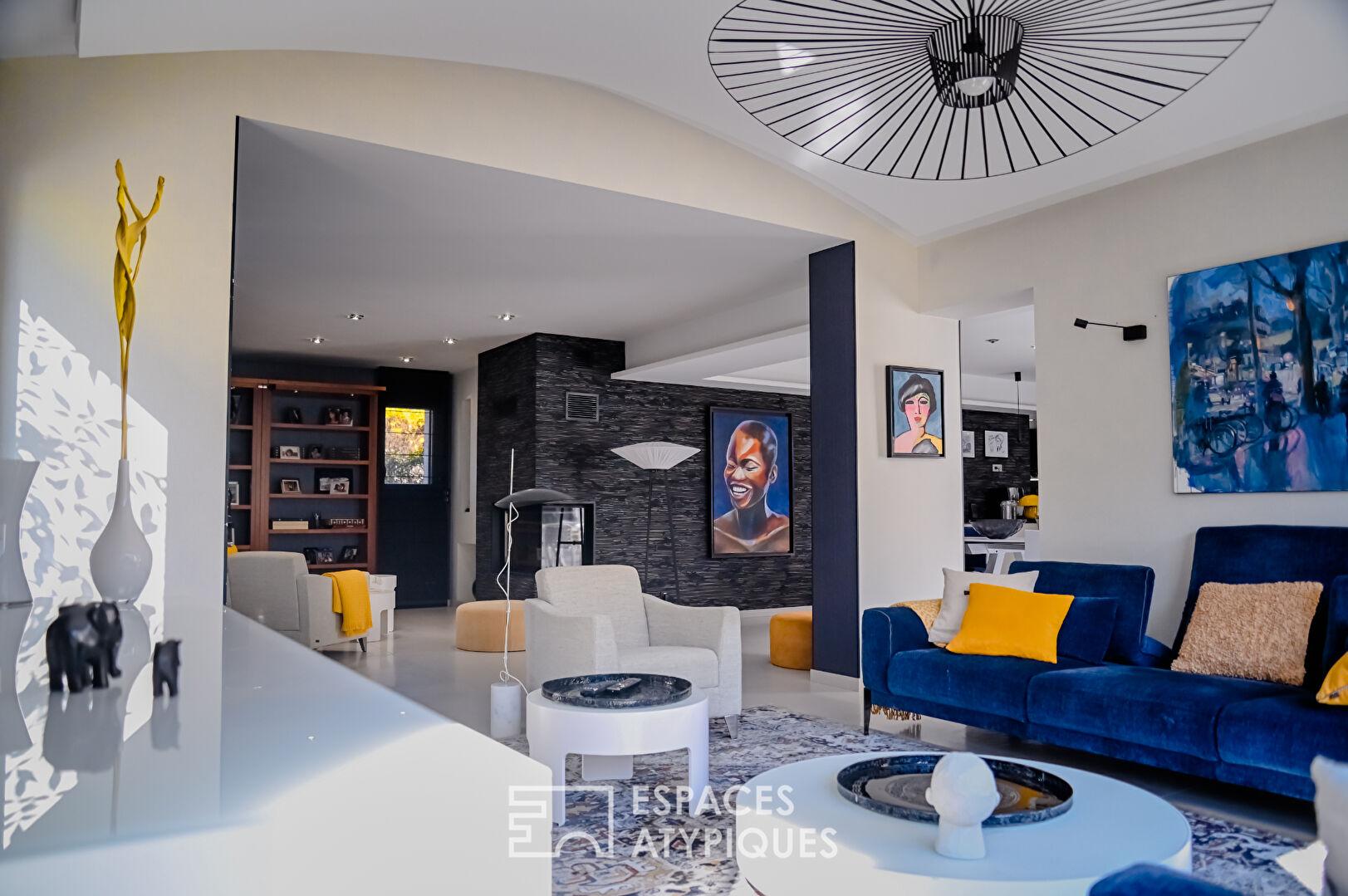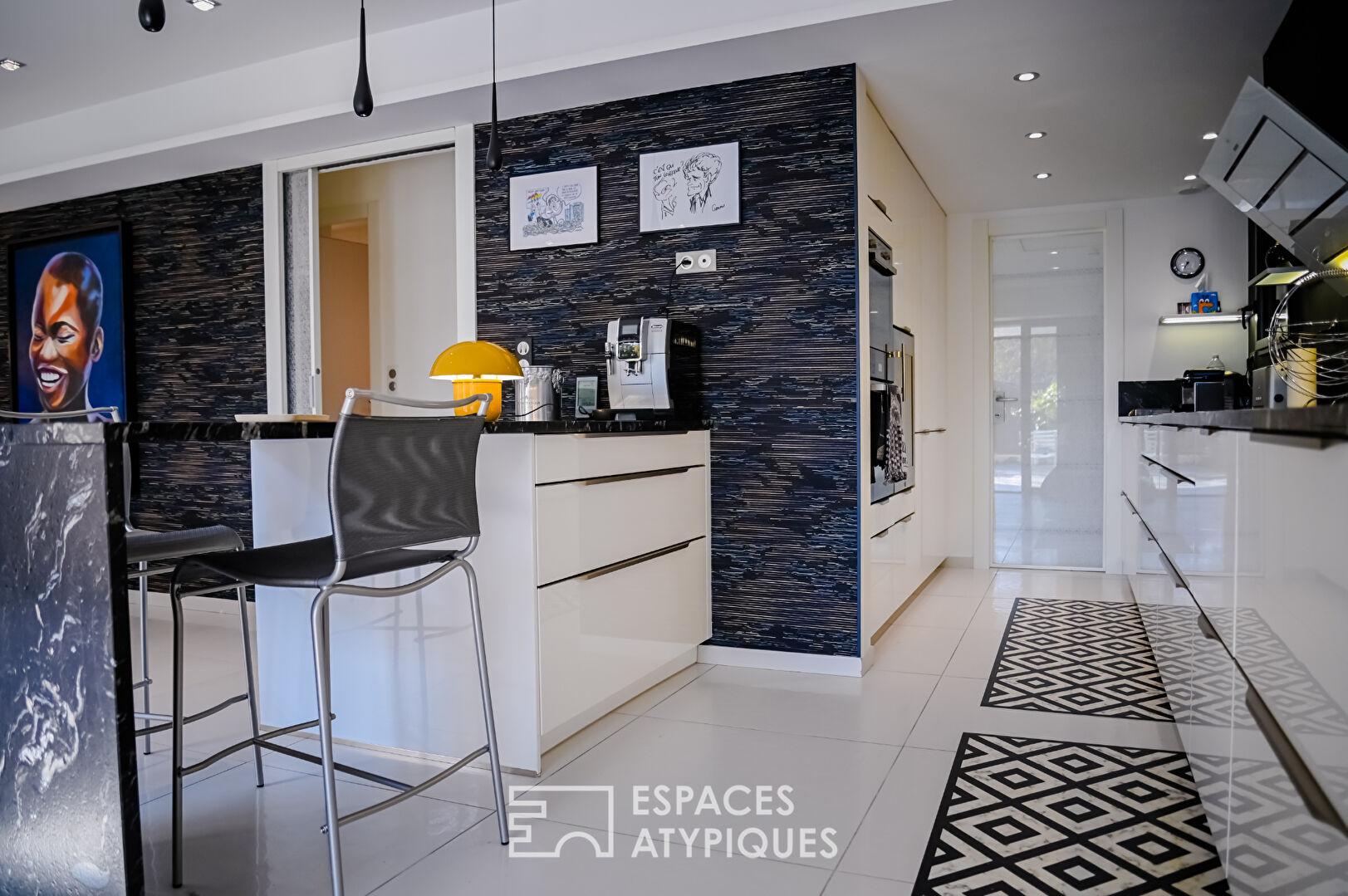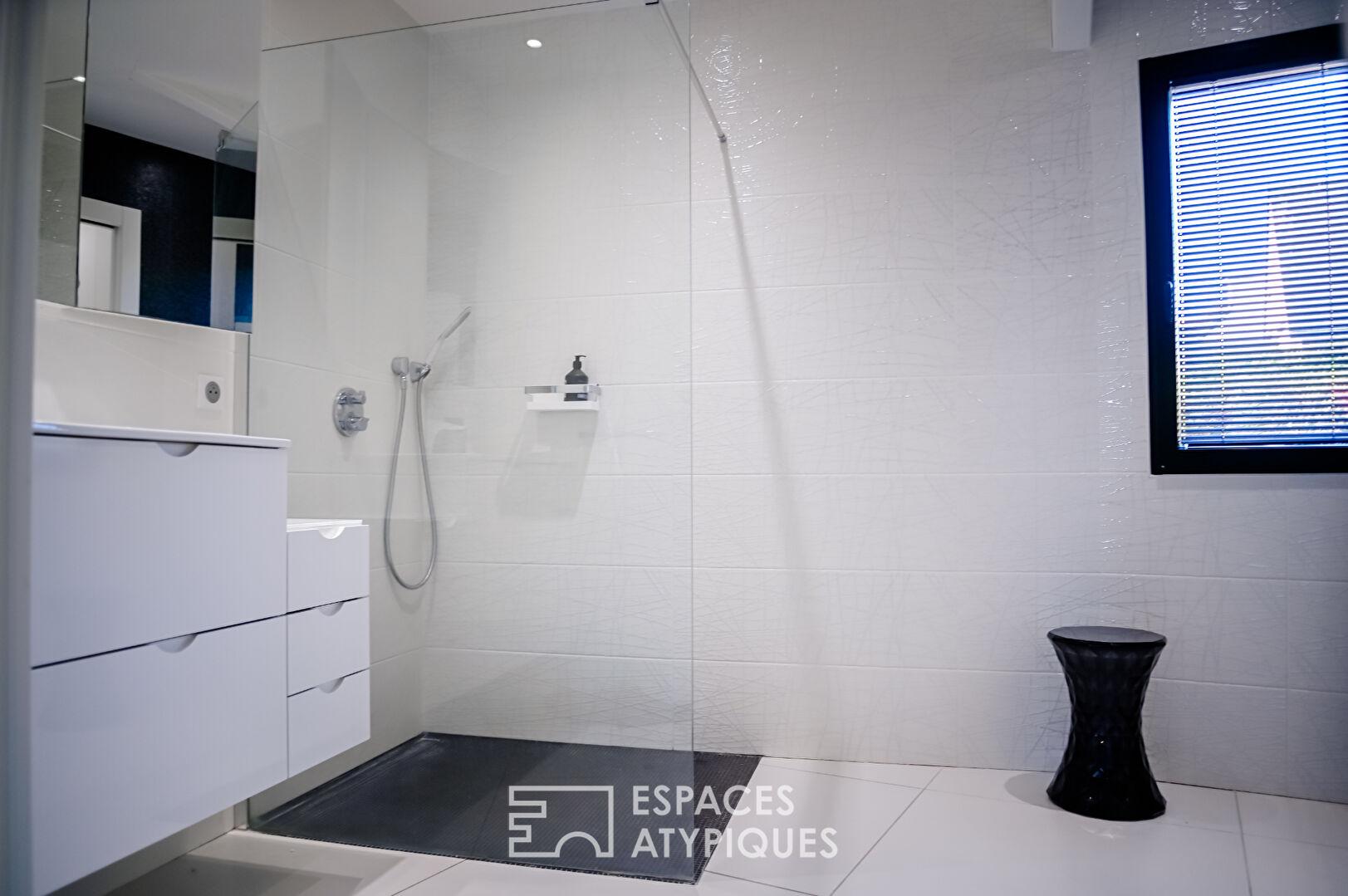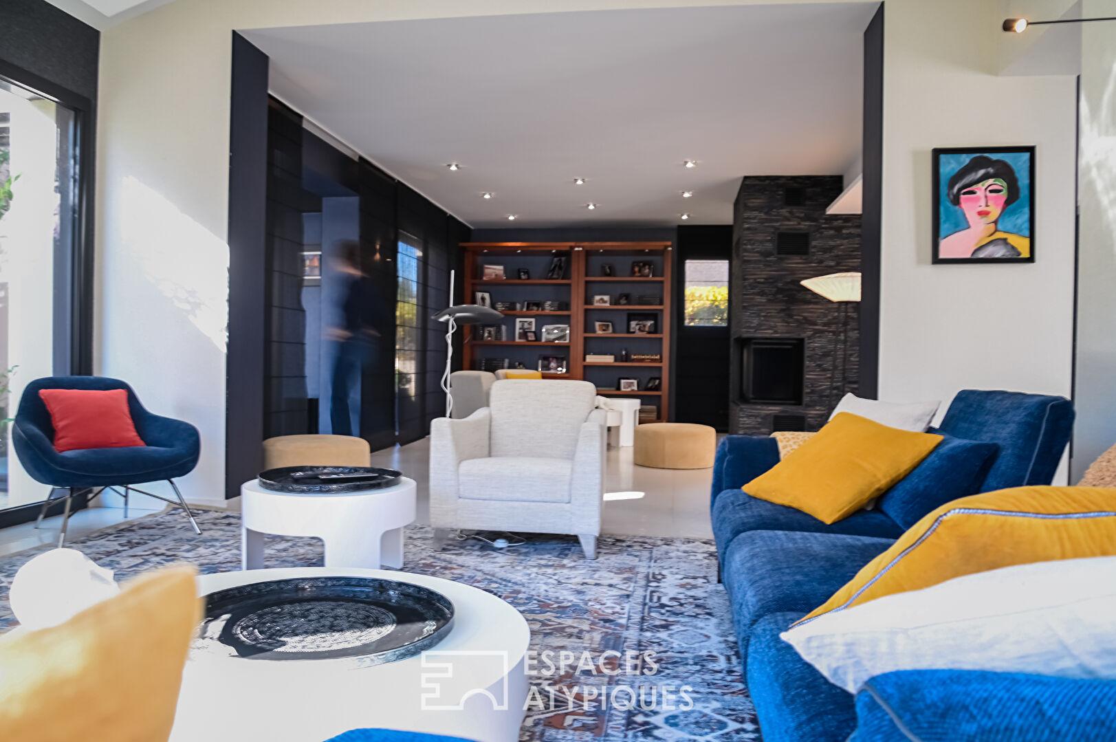 Entre la géothermie, les baies à galandage et les finitions sérigraphiées, la qualité technique (DPE C) égale le raffinement décoratif.