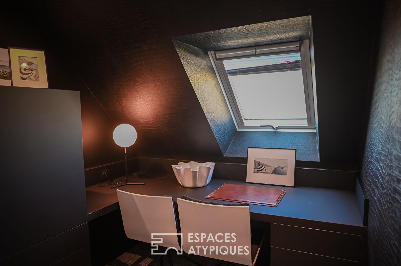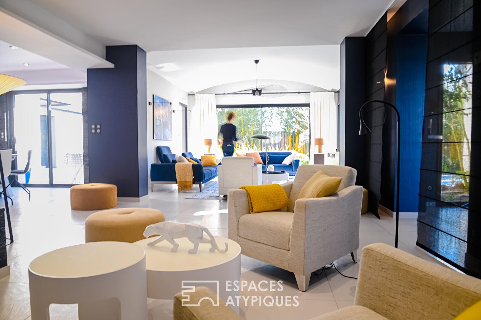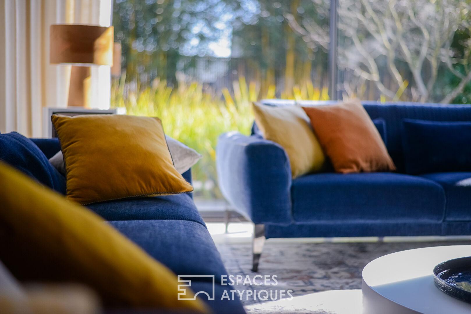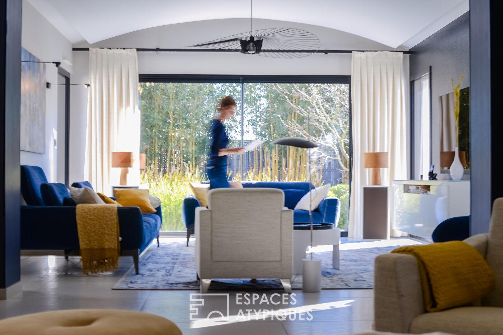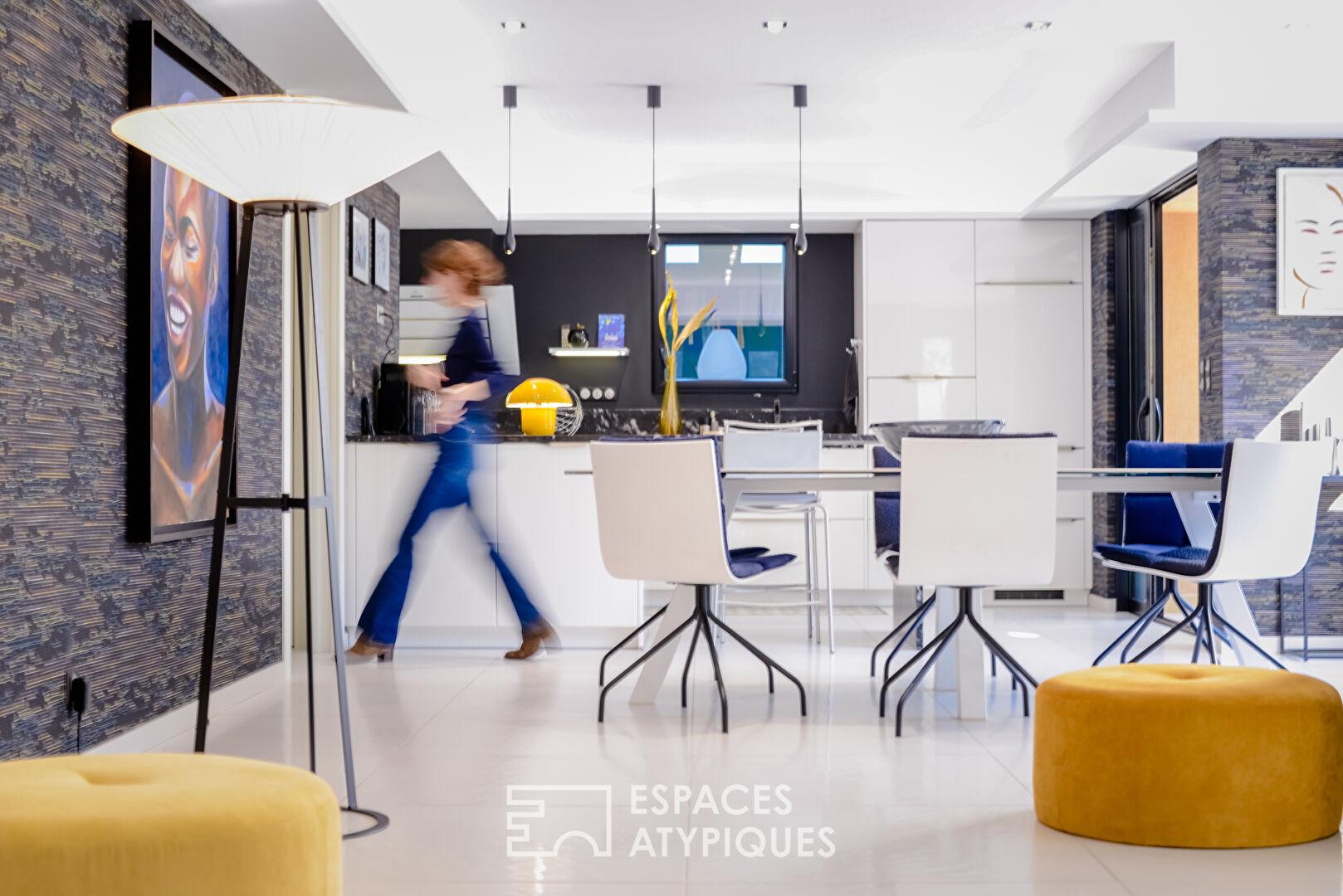 Entre la géothermie, les baies à galandage et les finitions sérigraphiées, la qualité technique (DPE C) égale le raffinement décoratif.
