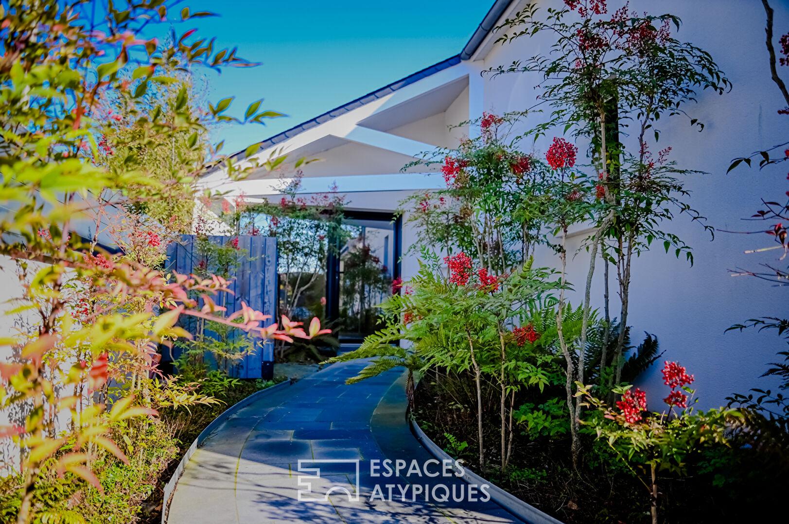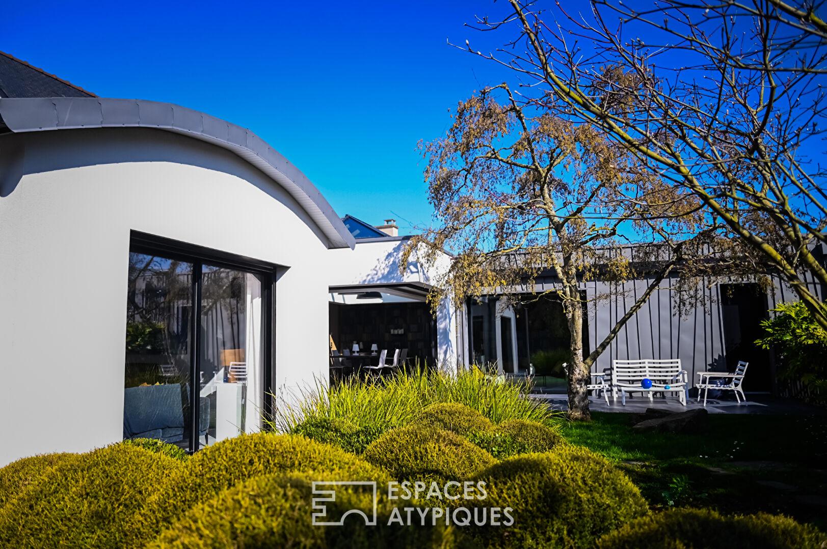 L’élégance de la discrétion définit cette maison d’architecte de 278 m² située à Binic, véritable refuge confidentiel au confort exigeant. Nichée au calme d’un quartier résidentiel, à quelques minutes à pied du port, des commerces et des plages, cette propriété de prestige profite d’une localisation privilégiée, à seulement 17 km de la gare TGV. Érigée sur une parcelle où chaque perspective a été étudiée, elle offre une vie de plain-pied fluide, ouverte sur un jardin paysager d’esprit zen et des terrasses invitant à la contemplation.