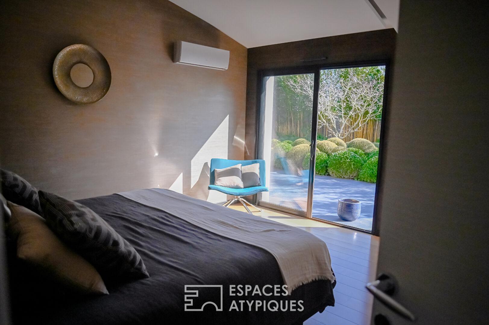 Les extérieurs, pensés comme un patio central vers lequel tous les regards convergent, garantissent une intimité absolue.