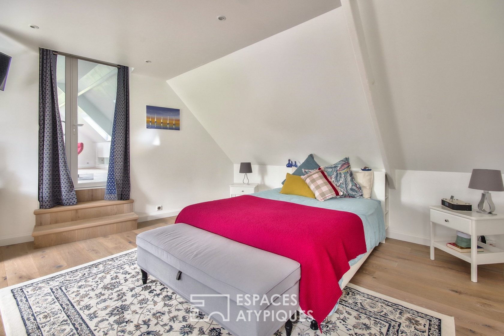 Sur ce même niveau, trois belles chambres décorées avec goût, une salle de bains ainsi qu’une salle d’eau viennent compléter cette partie.