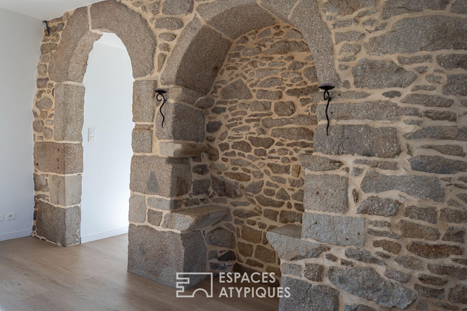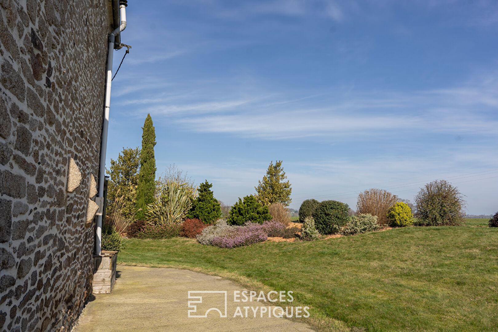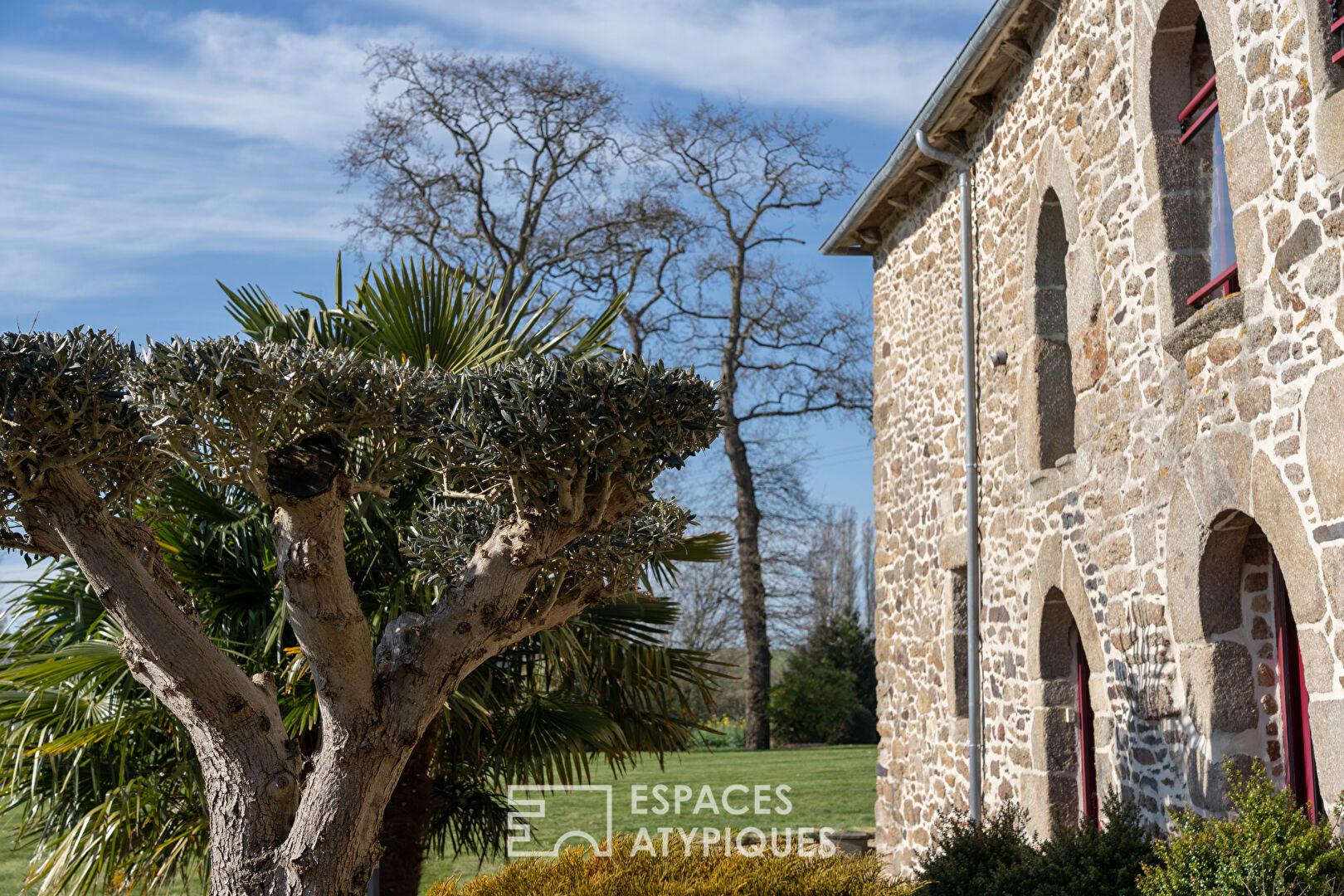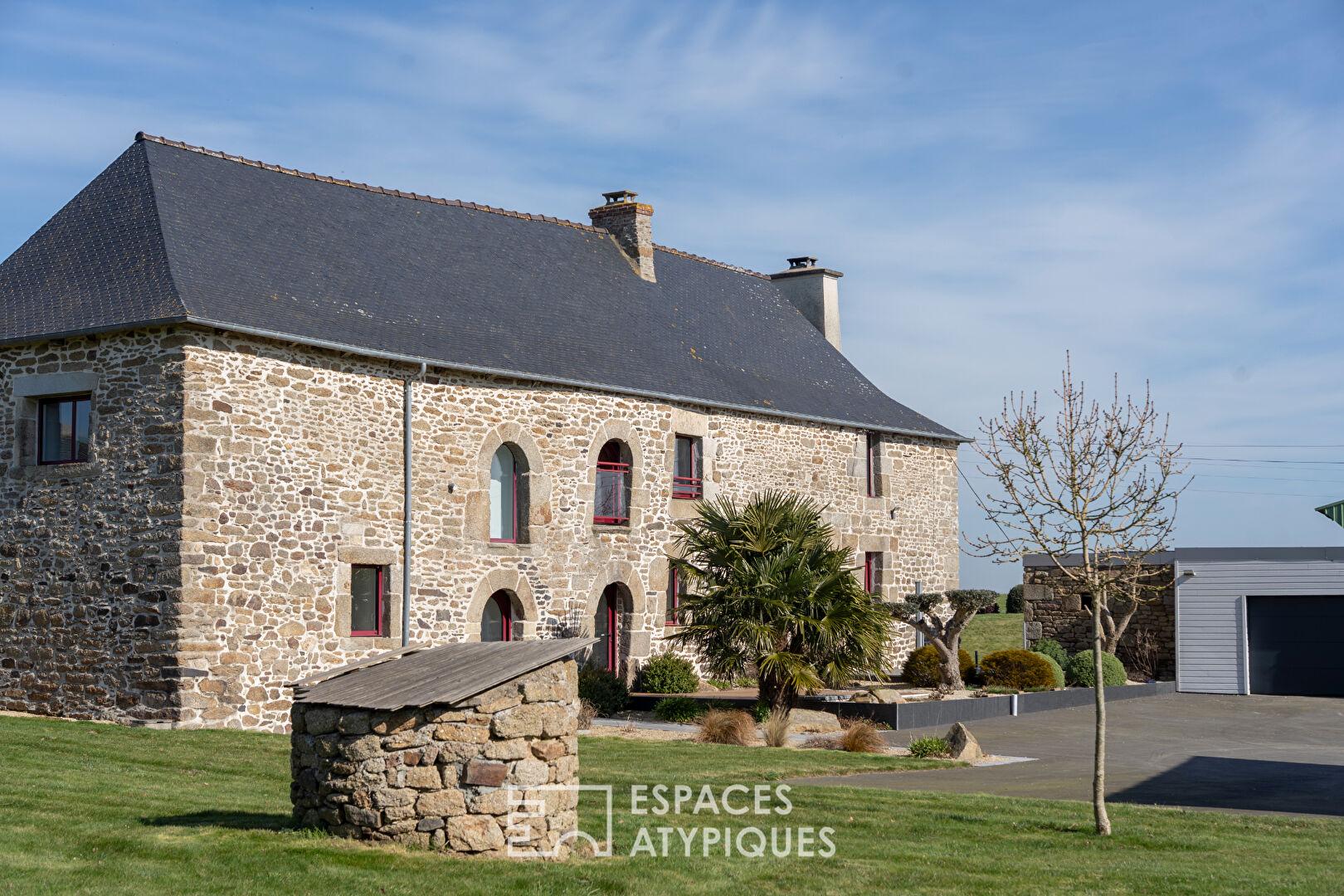 Située à Plénée-Jugon, cette majestueuse bâtisse en pierre incarne le charme du patrimoine breton. Alliant l’élégance de l’ancien à une rénovation contemporaine de belle qualité, cette propriété s’étend sur un terrain paysager de 3 800 m².