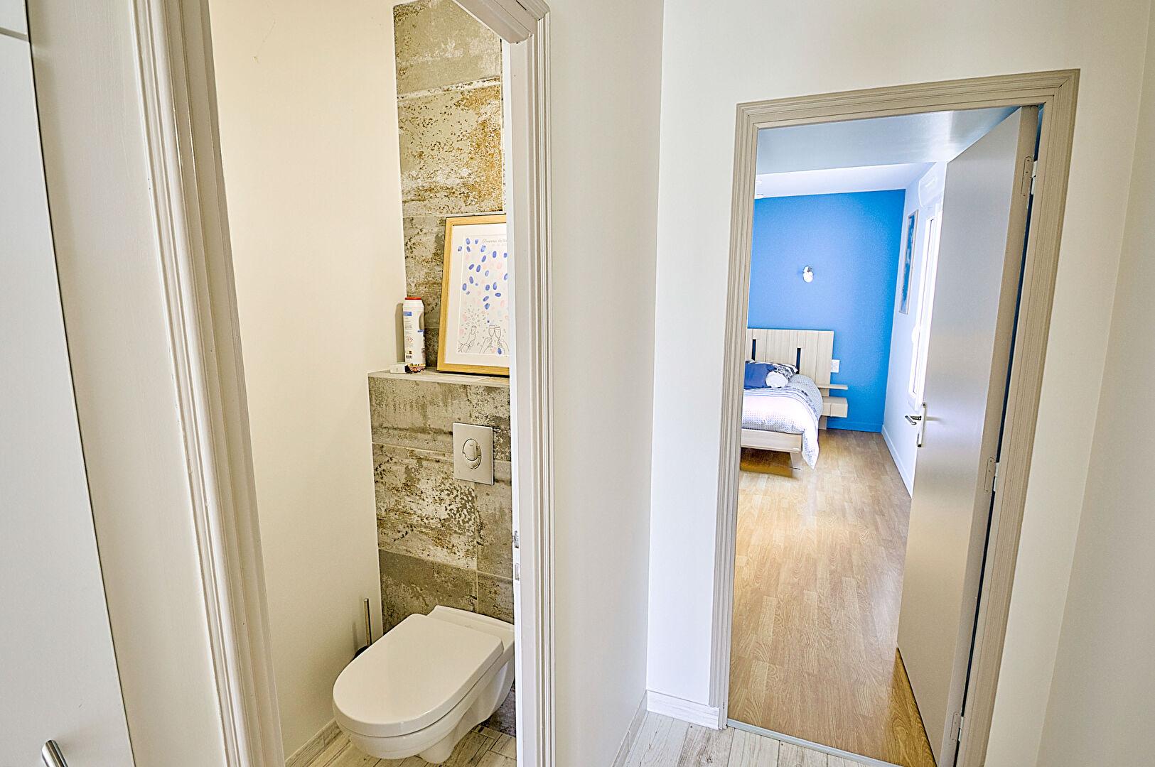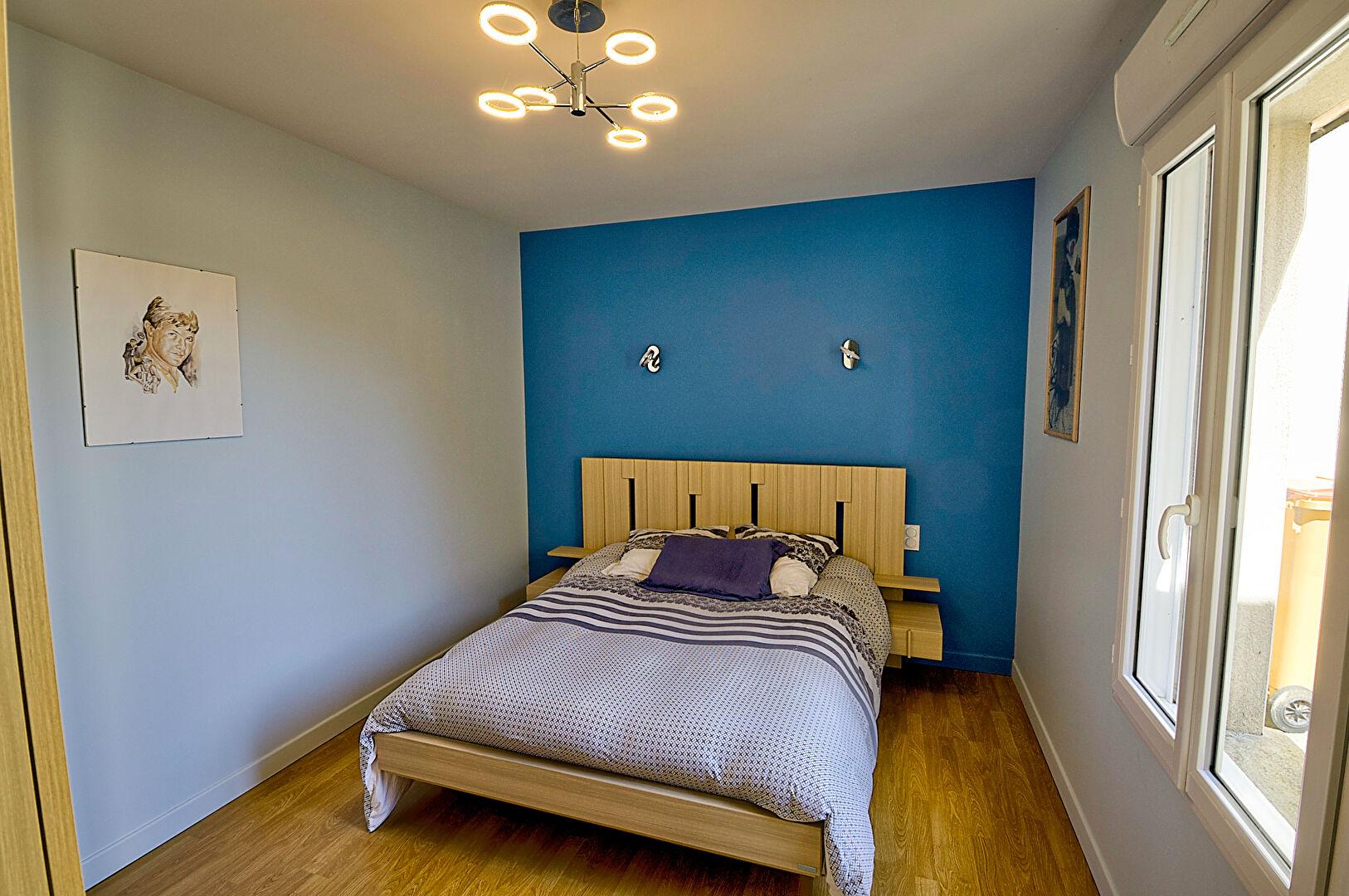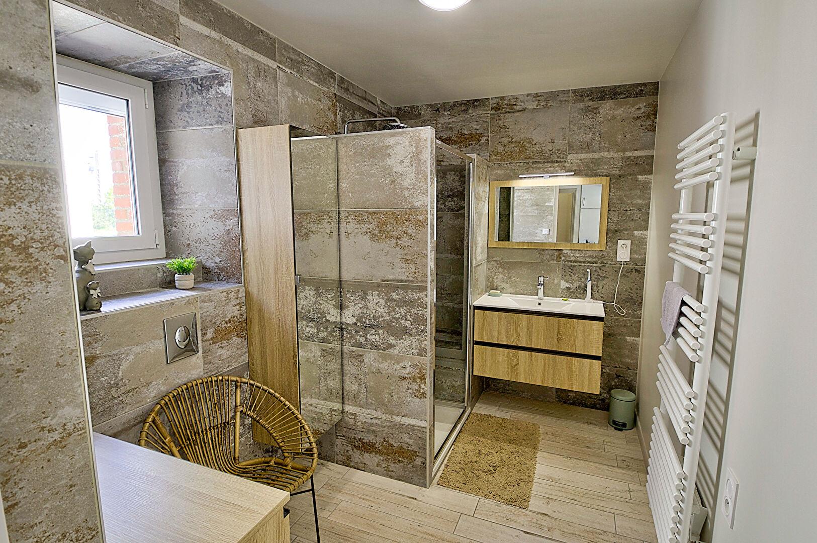 L’étage distribue deux chambres, un espace bureau et une seconde salle d’eau.
