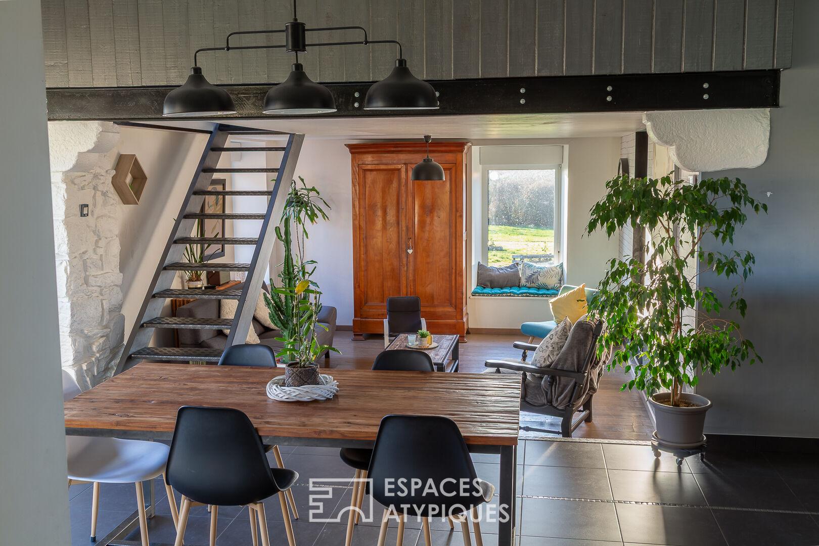 Exposition plein sud et terrain d’environ 2257m² , cette maison allie pierre et modernité grâce à son extension en bois à toit plat qui relie les deux maisons en pierres de pays rénovées.