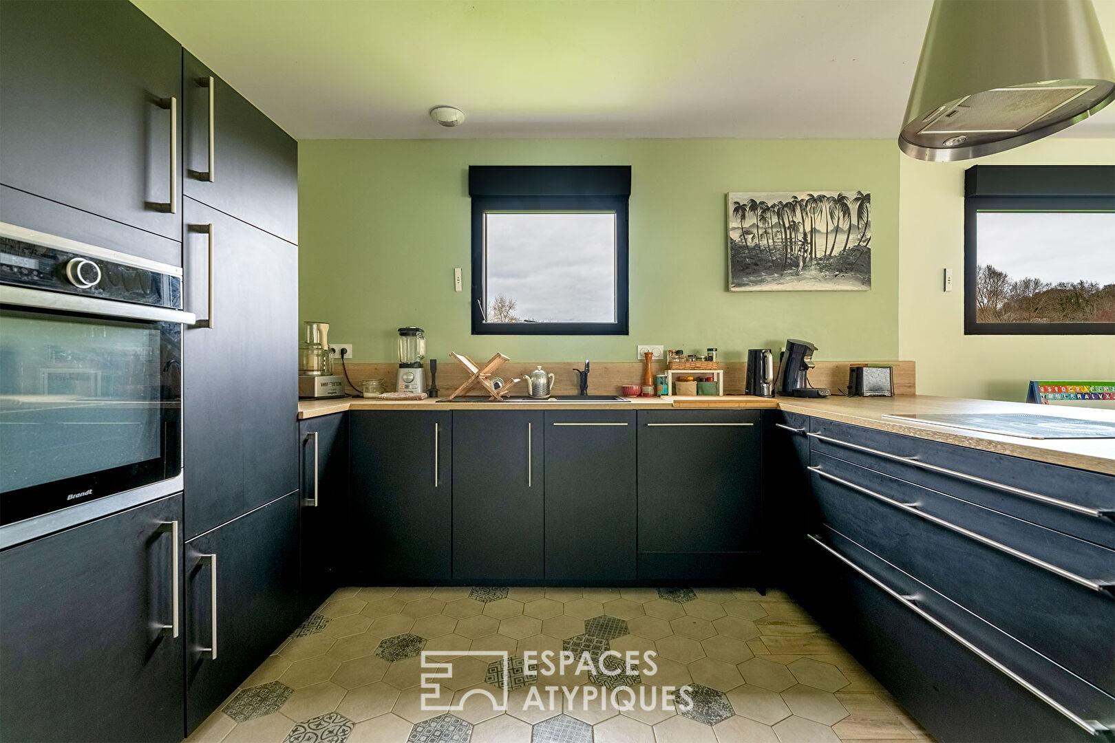 La cuisine ouverte et fonctionnelle , pensée pour le partage , confirme la vocation conviviale du lieu : le coeur battant de la maison !