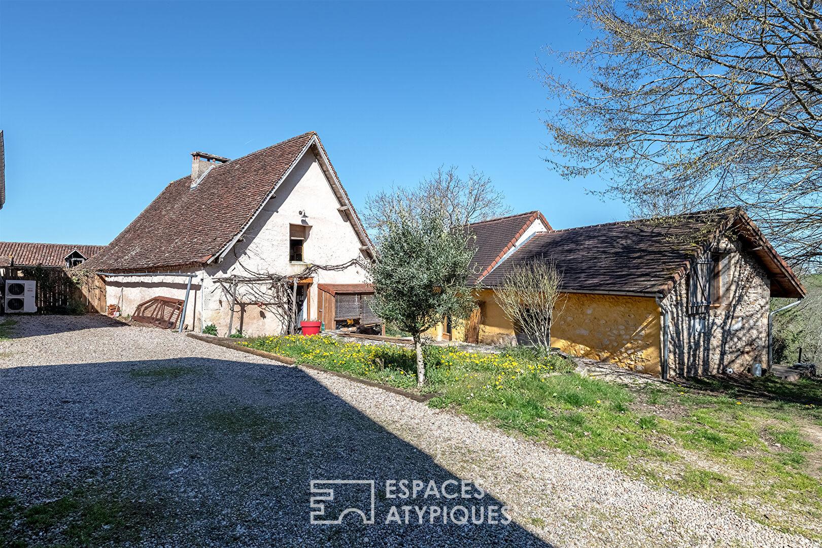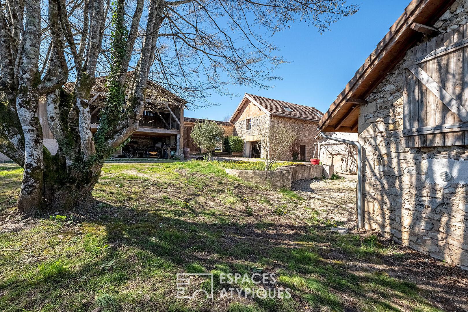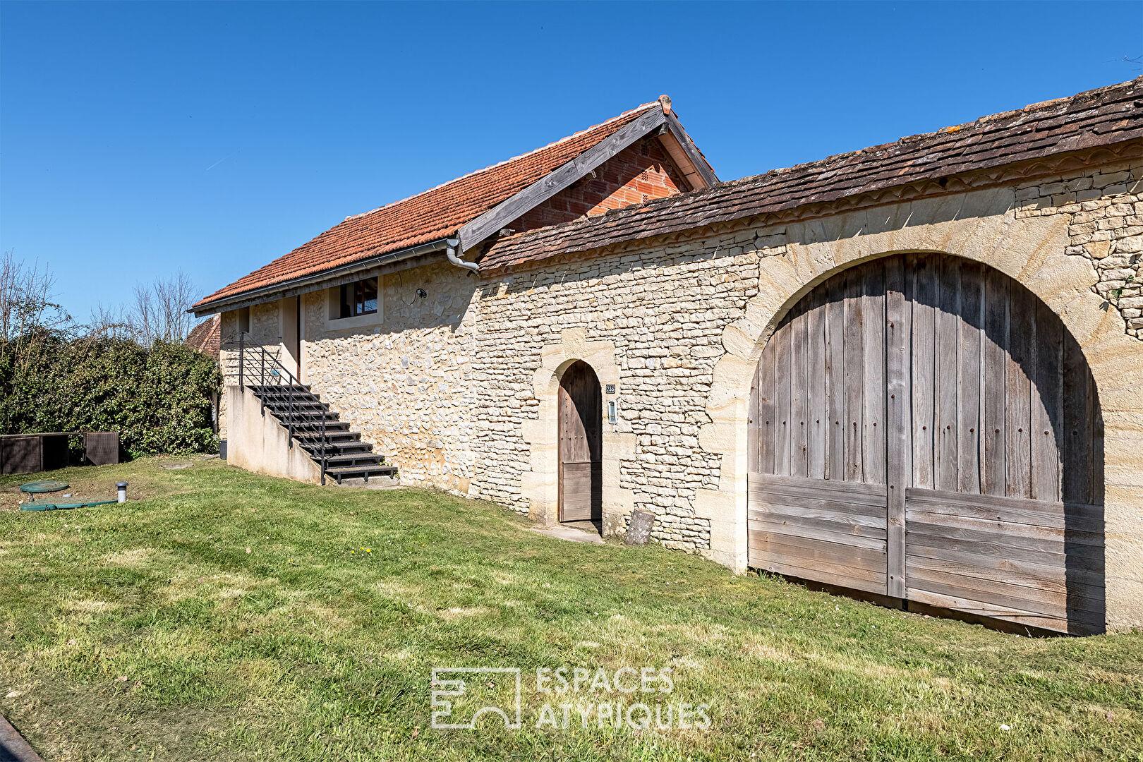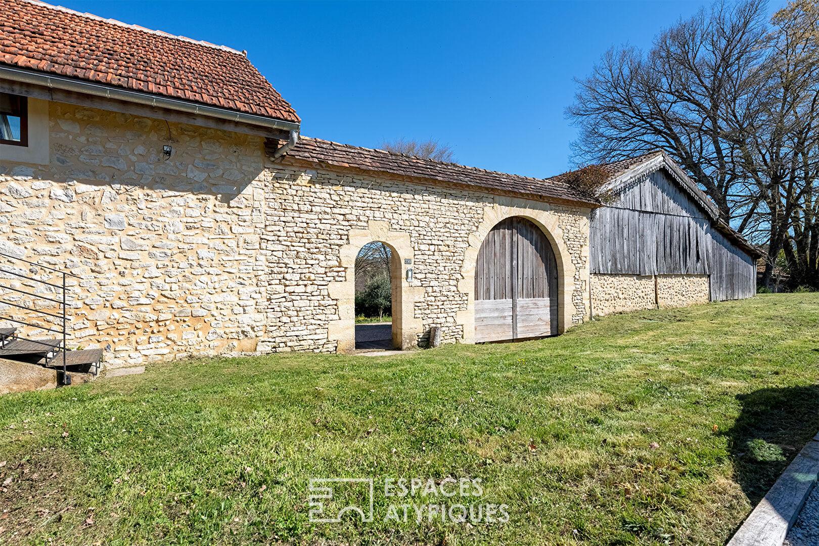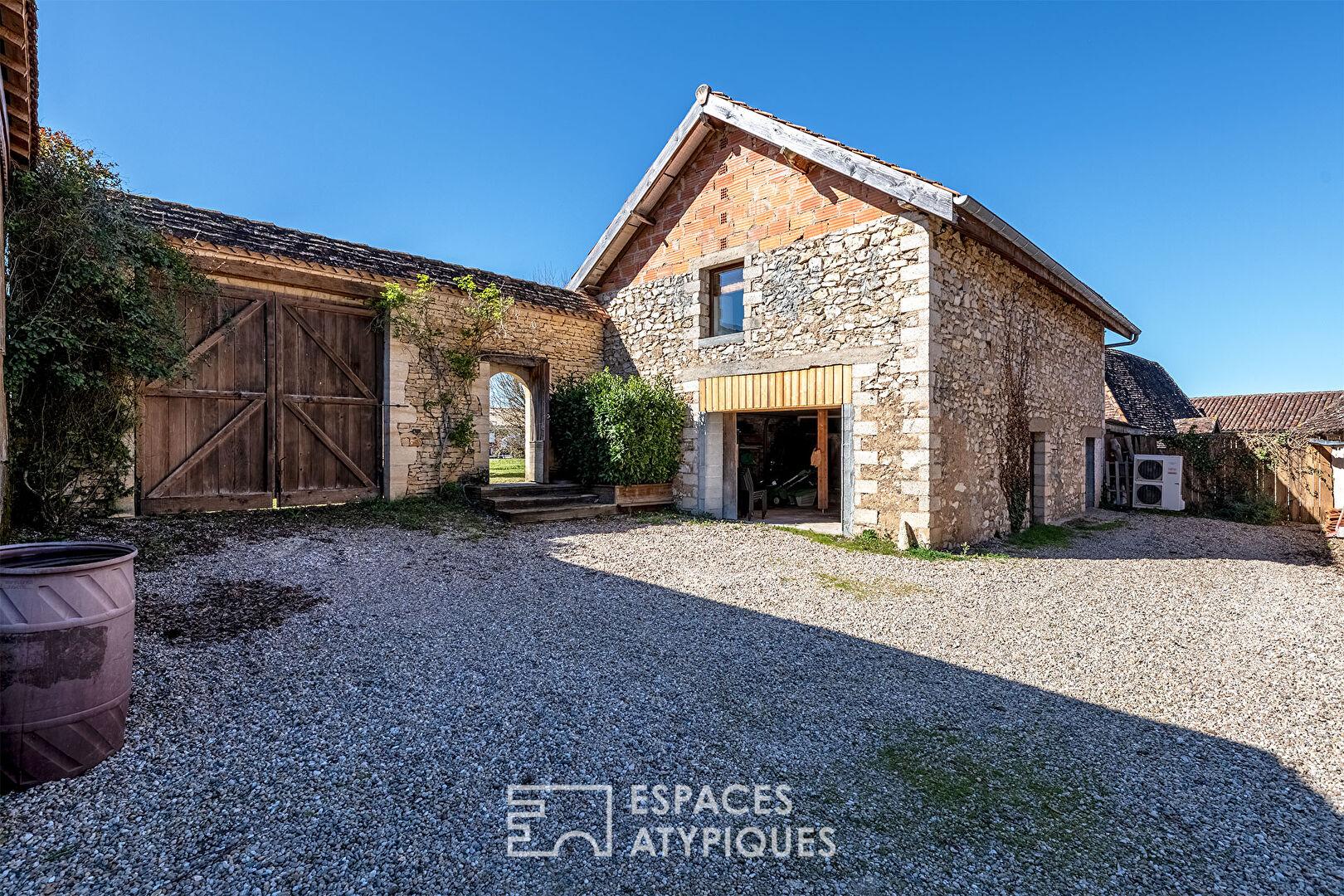 Au coeur d’un hameau de campagne situé aux portes de Périgueux, ce remarquable corps de ferme du XVIII e siècle déploie tout le charme et l’authenticité de l’architecture périgourdine .
