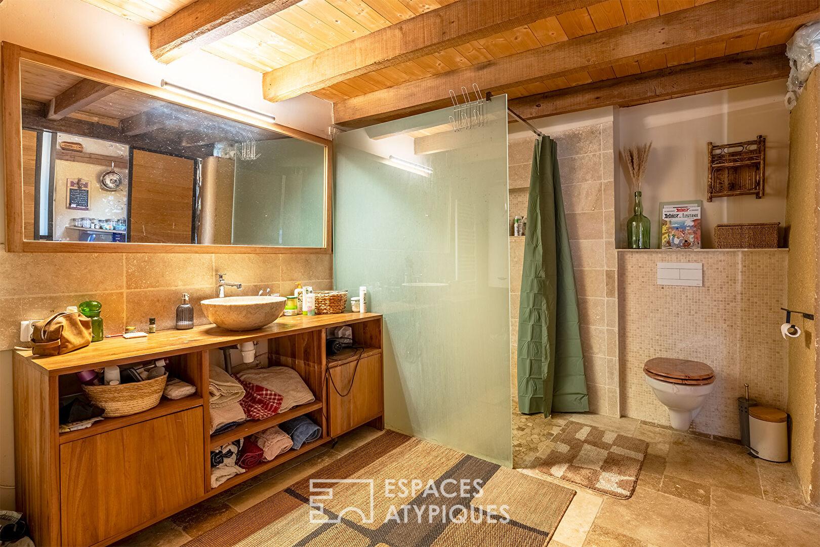 – La seconde maison, autrefois dédiée aux animaux, a été entièrement repensée dans un esprit écologique et qualitatif, avec une isolation en chaux-chanvre et bois .