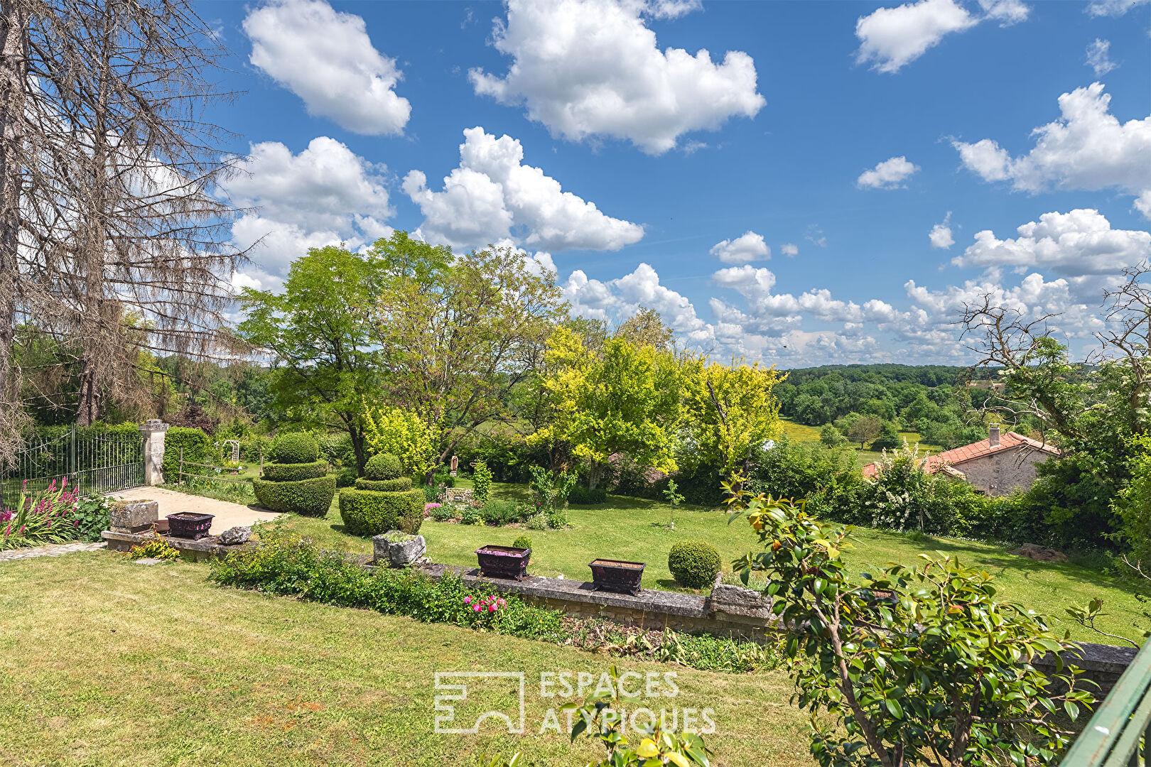 Perchée sur les hauteurs de Grand-Brassac, cette maison de maître du XVIIIe siècle offre une vue imprenable sur la vallée de la Dronne et coche toutes les cases, même celles que vous n’aviez pas encore imaginées.