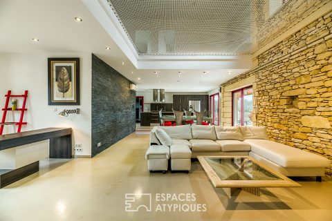 Périgourdine contemporaine avec piscine, terrain constructible.