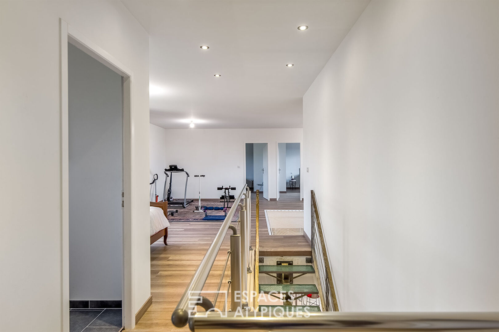 Un couloir au RDC distribue un quartier parental assurant une vie de plain-pied