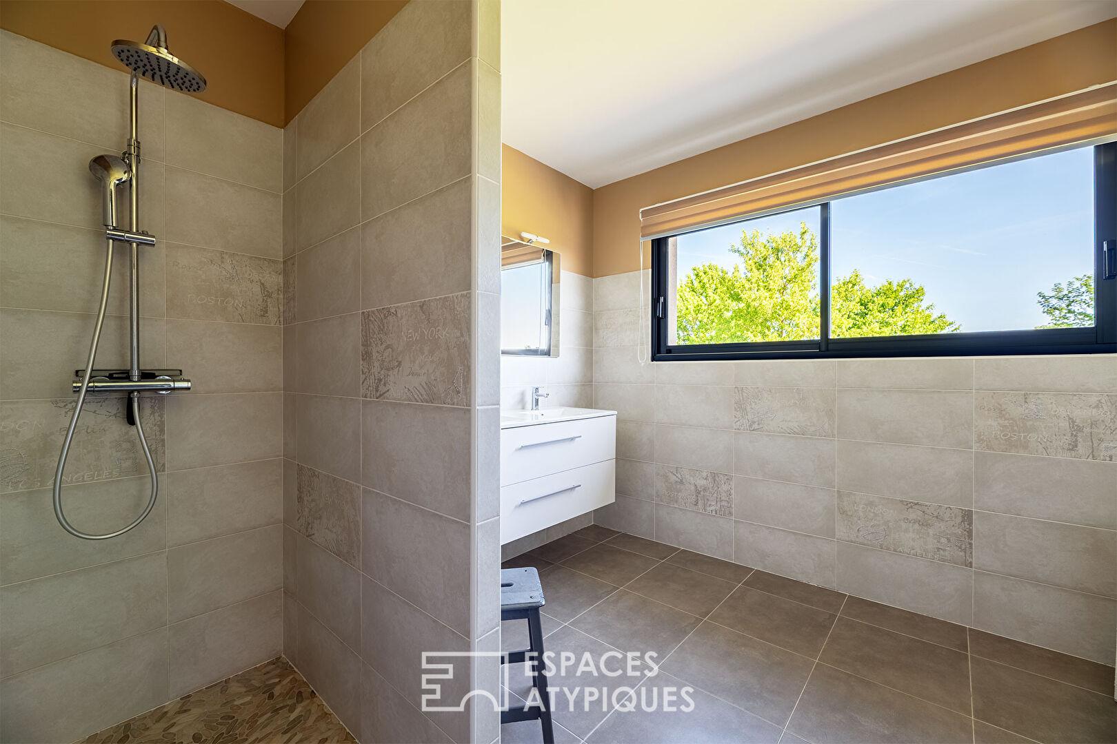 Enfin, le double garage motorisé avec borne de recharge pour véhicule électrique apporte la touche finale de modernité à ce bien d’exception.