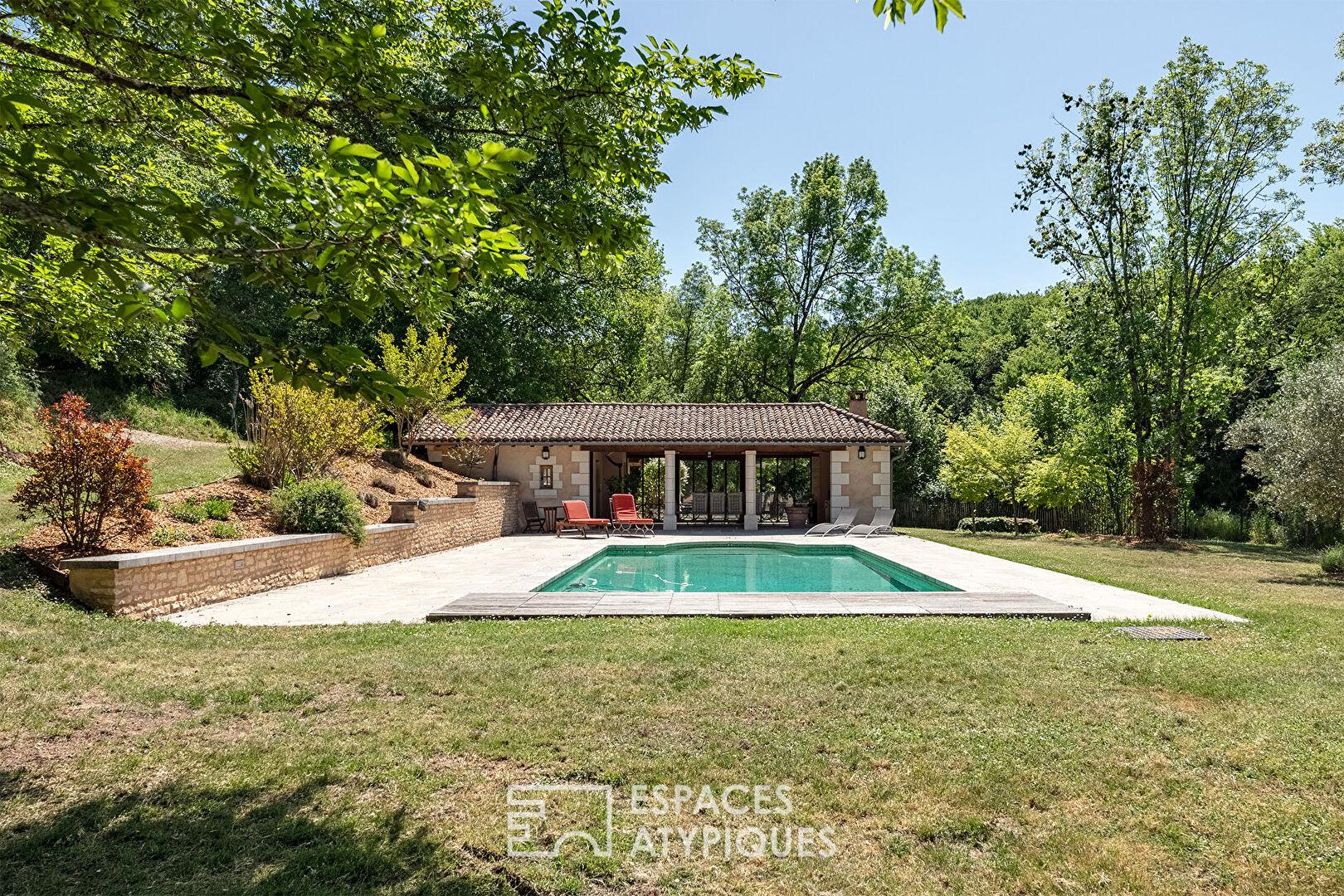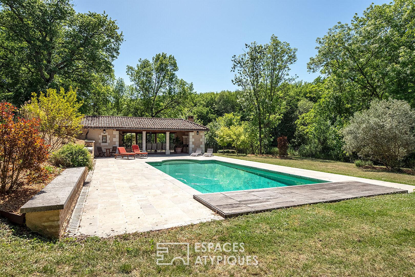 Dans ce cadre enchanteur, la piscine s’intègre harmonieusement au paysage, invitant à la détente et aux plaisirs estivaux.