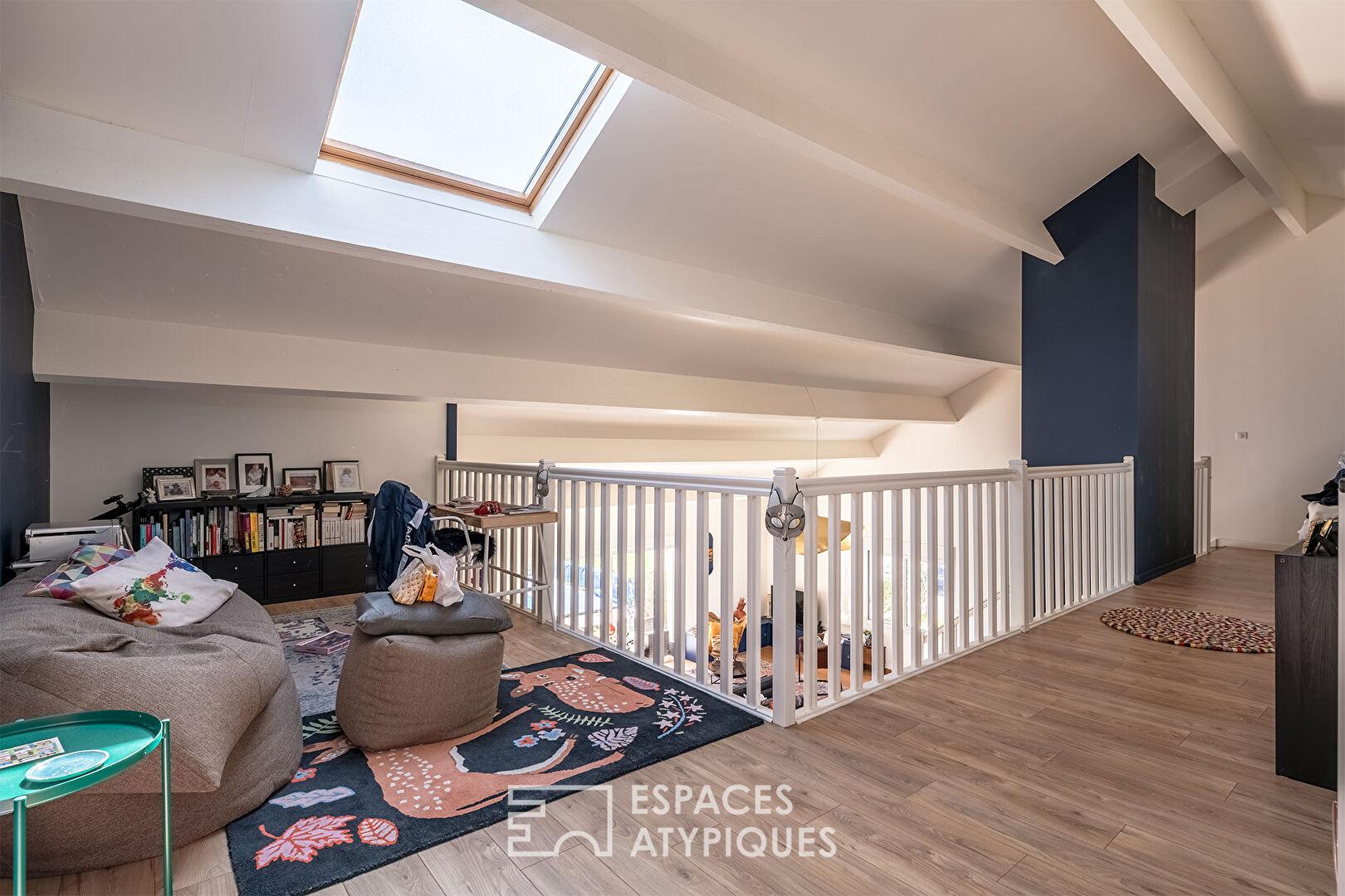 À l’étage, vous trouverez deux chambres supplémentaires, une salle d’eau et un second sanitaire indépendant. Sous les combles, les possibilités qui se présentent à vous sont aussi nombreuses que les rangements un peu partout, toutes les projections sont permises. Quant à la mezzanine, elle parachève un tout singulier aux charmes pluriels, permettant d’admirer le décor et de regarder la terre tout en fixant droit dans les yeux les étoiles.