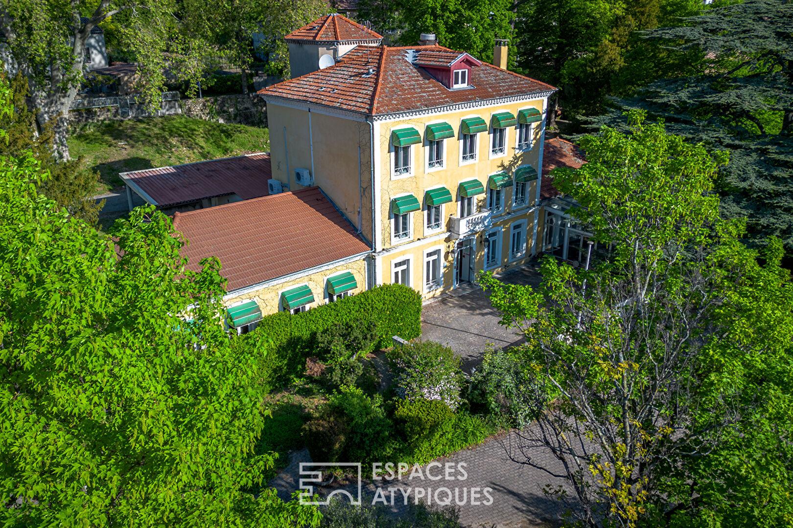 Situé à 15mn de Valence, cet ensemble immobilier de caractère développe près de 2000 m² habitables au sein d’un parc arboré de 1,5 hectare. Ancien hôtel-restaurant empreint de charme, il séduit d’emblée par son architecture authentique, ses volumes généreux et ses multiples espaces de réception, offrant un potentiel rare pour un projet hôtelier de prestige ou de promotion immobilière avec un foncier libre de tout occupant.