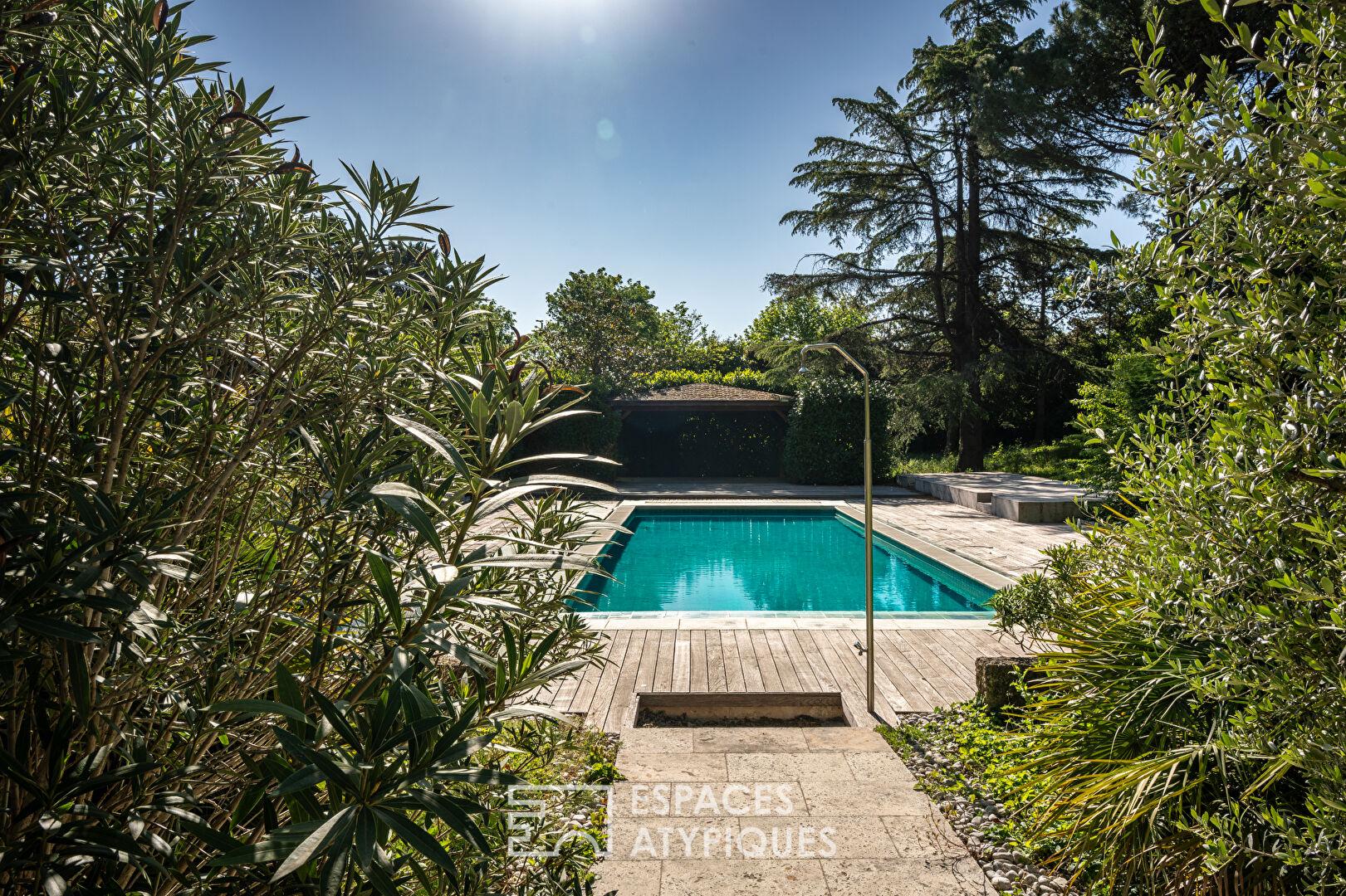 À l’extérieur, le parc paysager invite à la déconnexion avec ses majestueux arbres centenaires, ses terrasses ombragées et sa piscine principale propice à la détente. Un terrain de tennis ainsi qu’un court couvert viennent enrichir les prestations, esquissant déjà un art de vivre tourné vers le bien-être et les loisirs. Un parking est aussi disponible. L’environnement, à la fois calme et accessible, bénéficie de la proximité immédiate de Valence et des grands axes autoroutiers ou ferroviaires.