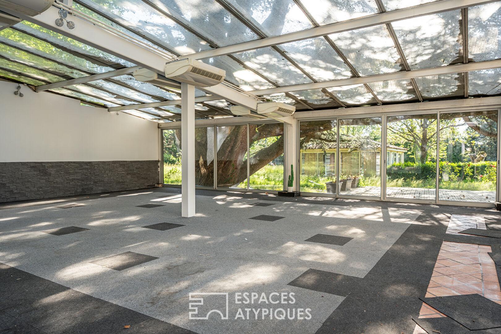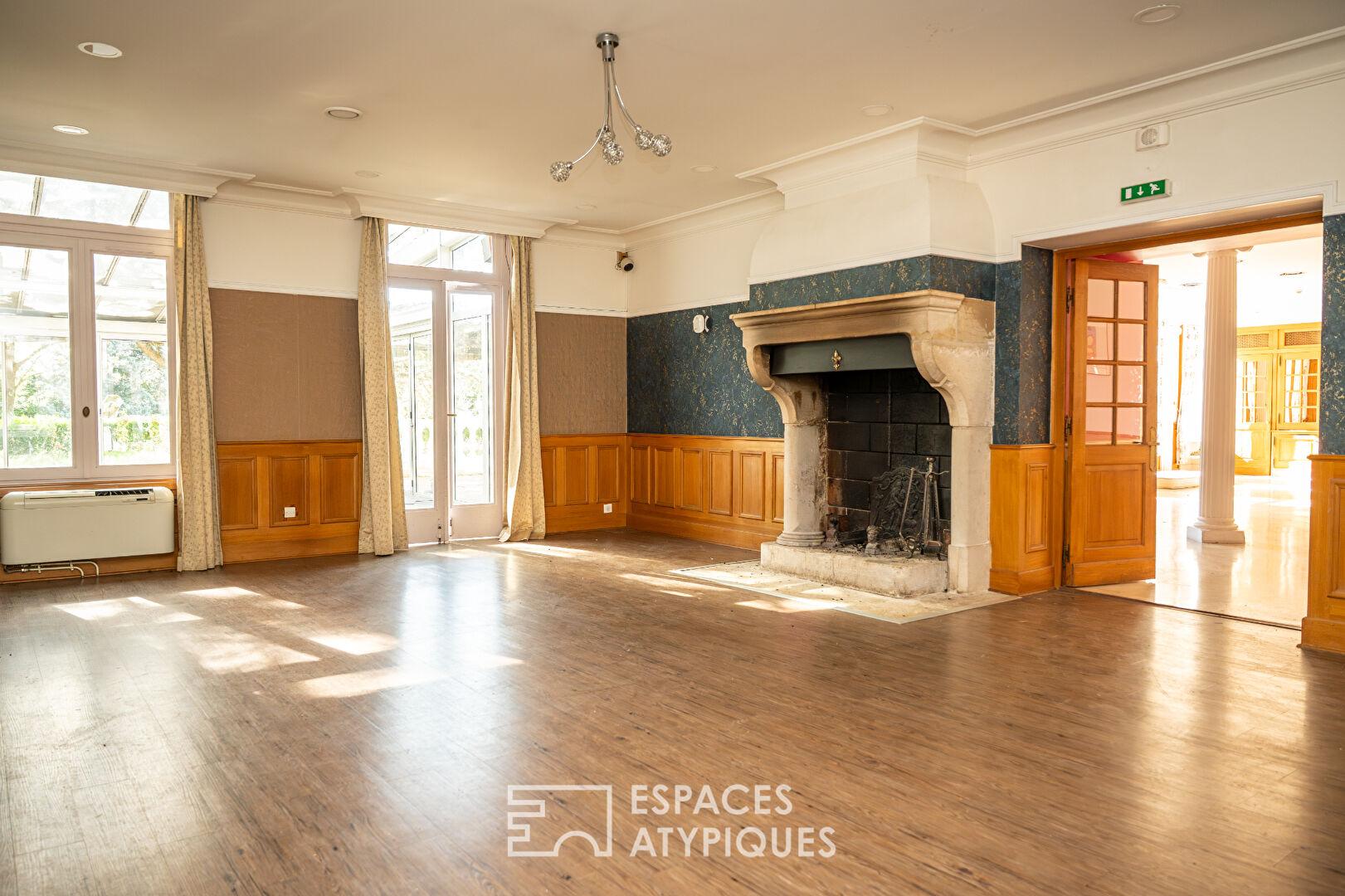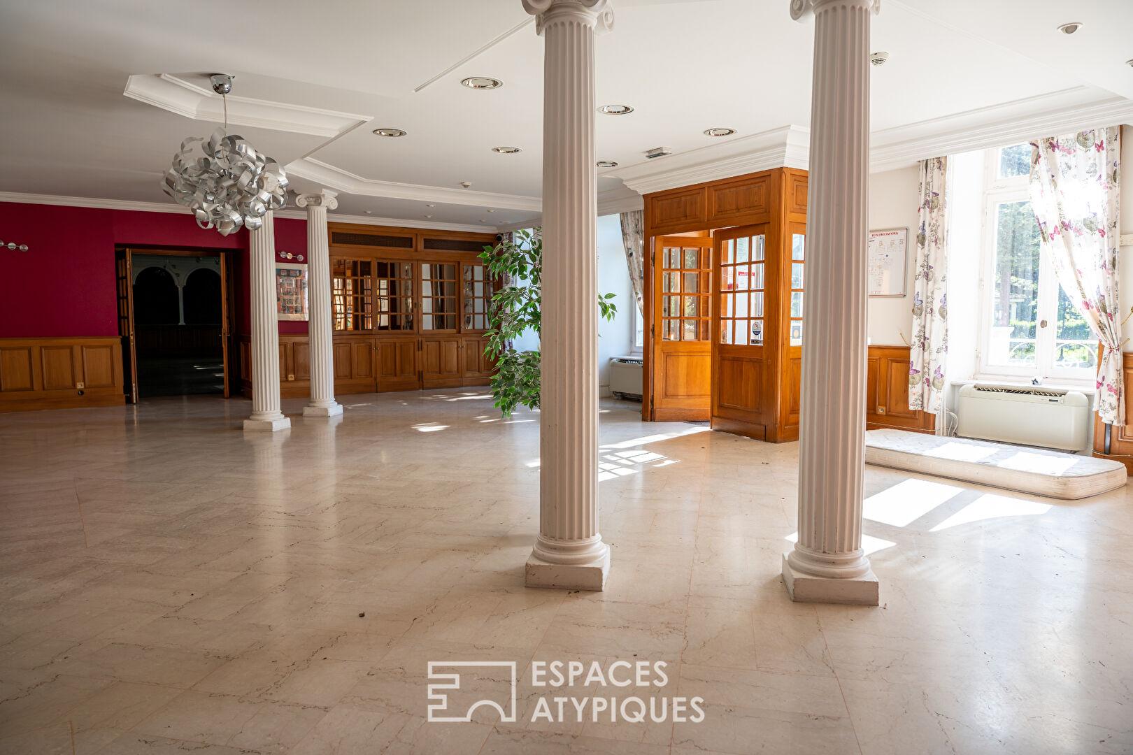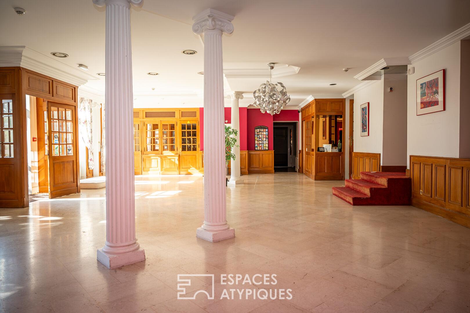 Le tout s’organise autour d’une maison de maître ainsi que des dépendances. L’intérieur dévoile une organisation à repenser, laissant libre cours à de nombreuses possibilités d’aménagement. Les vastes salles de réception baignées de lumière, aux charpentes apparentes, côtoient un espace restaurant pouvant accueillir jusqu’à 120 convives. Les 25 chambres existantes offrent une base idéale pour une activité hôtelière ou événementielle, tandis que les espaces techniques et annexes complètent cet ensemble à fort potentiel. Une maison de fonction indépendante de type T5 d’environ 100 m², avec piscine privative, vient parfaire l’ensemble.