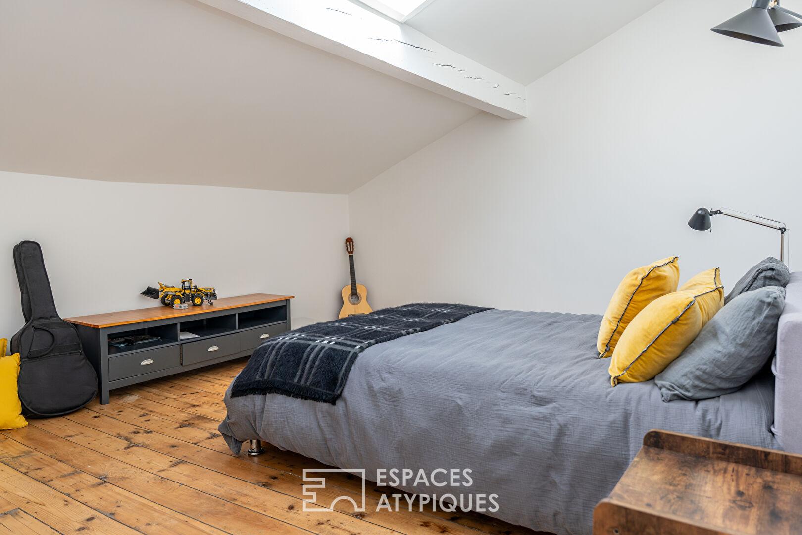 À l’étage, on découvre deux belles chambres de 18m² chacune, un bureau de 12m² idéal pour le télétravail, une salle d’eau, un WC indépendant ainsi qu’un splendide dressing de 18m² . Dans les combles, deux chambres mansardées, une salle d’eau et une vaste salle de jeux de 34m² offrent un espace supplémentaire très apprécié des familles.