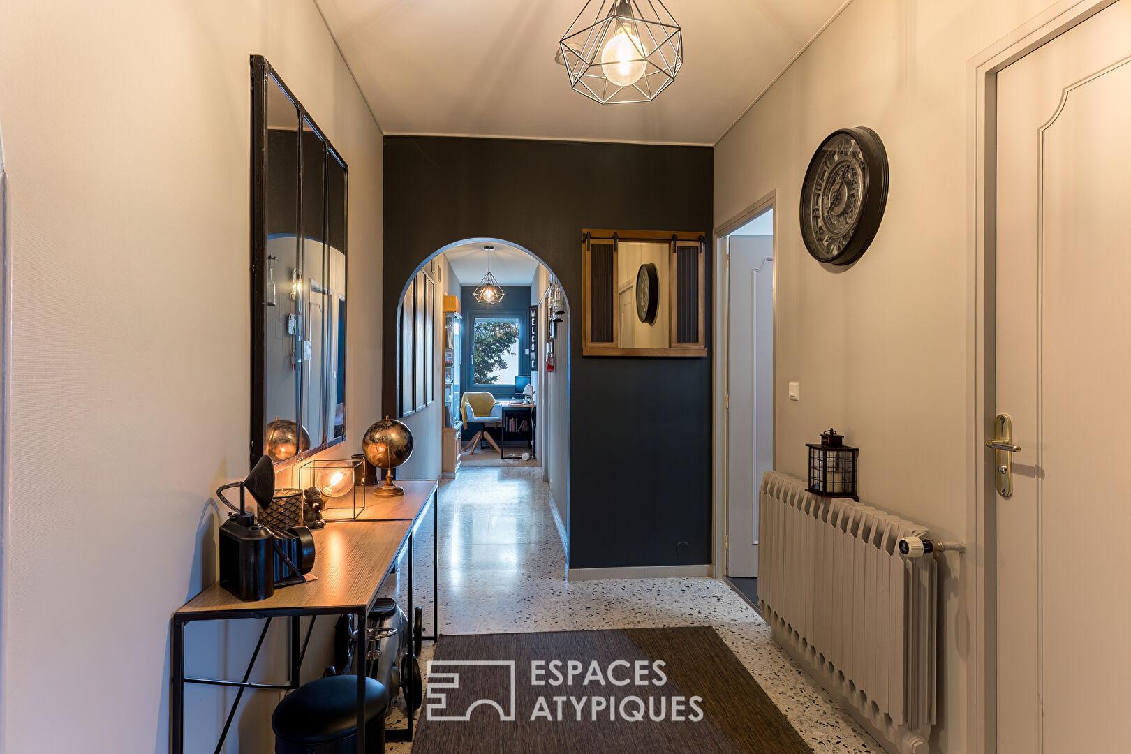 À seulement 5 minutes de la gare TGV de Valence, au sein d’un hameau très prisé, cette propriété de caractère déploie ses 345 m2 au coeur d’un parc arboré de 2400 m2. Ce bien immobilier atypique se distingue par une architecture largement ouverte sur l’extérieur, où chaque fenêtre cadre un tableau végétal composé de Ginkgo Biloba, d’Araucaria et d’Érables du Japon.