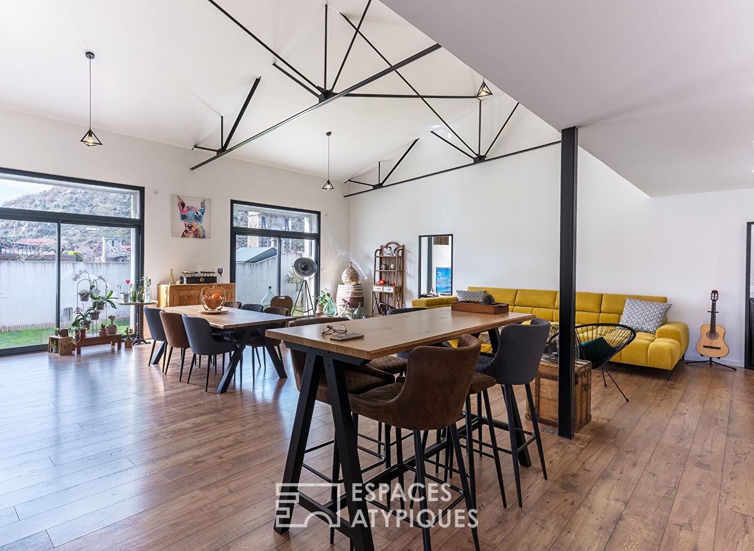 Ce loft d’architecte de 180 m², fruit de la réhabilitation audacieuse d’un ancien garage et de logements ouvriers, s’érige sur une parcelle de 450 m². Alliant héritage patrimonial et écriture contemporaine, cette propriété unique dispose d’un jardin piscinable, d’une vaste cour intérieure et d’un potentiel d’évolution rare, le tout à deux pas des berges du Rhône.