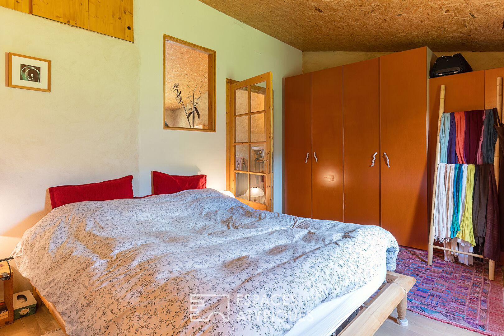 Le second bâtiment, tout aussi indépendant, propose une chambre supplémentaire ainsi qu’un espace buanderie équipé de toilettes sèches, complétés par un poêle et une climatisation réversible.