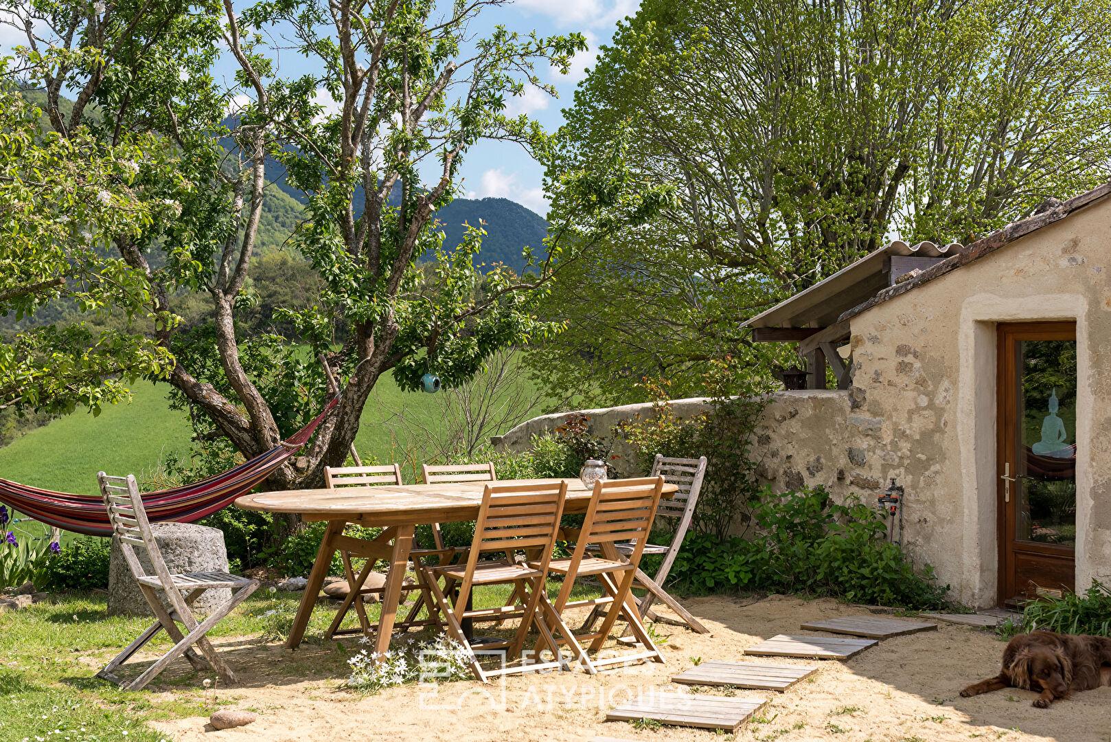 Cet ensemble immobilier constitue une pièce architecturale rare, offrant une modularité idéale pour un projet de vie ou un pied-à-terre de charme dans le Diois.
