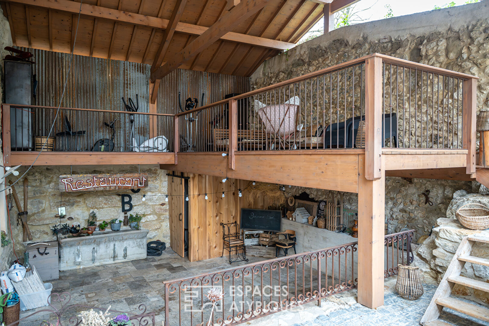À l’extérieur, deux ambiances distinctes se dessinent : un espace piscine sans vis-à-vis, propice à la détente, et un second espace couvert avec grande terrasse et mezzanine, parfait pour les longues soirées d’été. Un espace de rangement complémentaire, accessible depuis l’extérieur, vient parfaire l’ensemble.