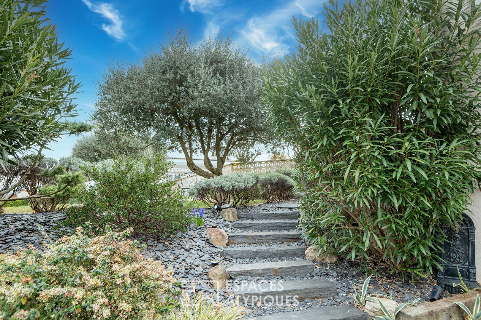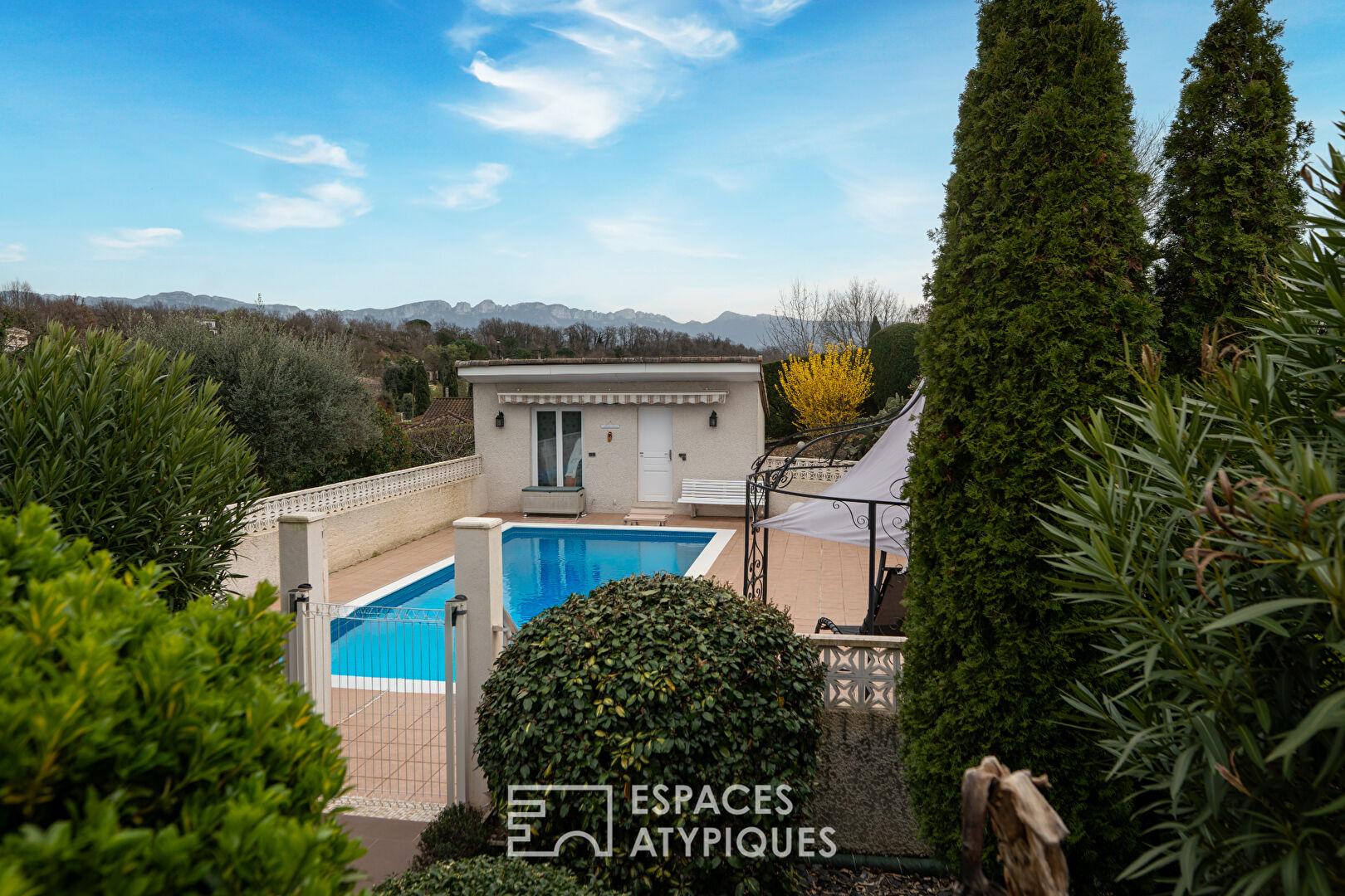 Dominant la vallée du Rhône, à Chatuzange-le-Goubet, cette villa de 330 m² s’érige comme une pièce maîtresse de l’immobilier aux portes de Valence. Implantée sur un terrain paysager de 2 000 m², cette propriété de caractère offre un panorama spectaculaire sur les contreforts du Vercors. Entre chênes et lignes contemporaines, le domaine profite d’une situation géographique privilégiée, à seulement 10 minutes de la gare TGV, alliant sérénité résidentielle et hyper-connectivité.