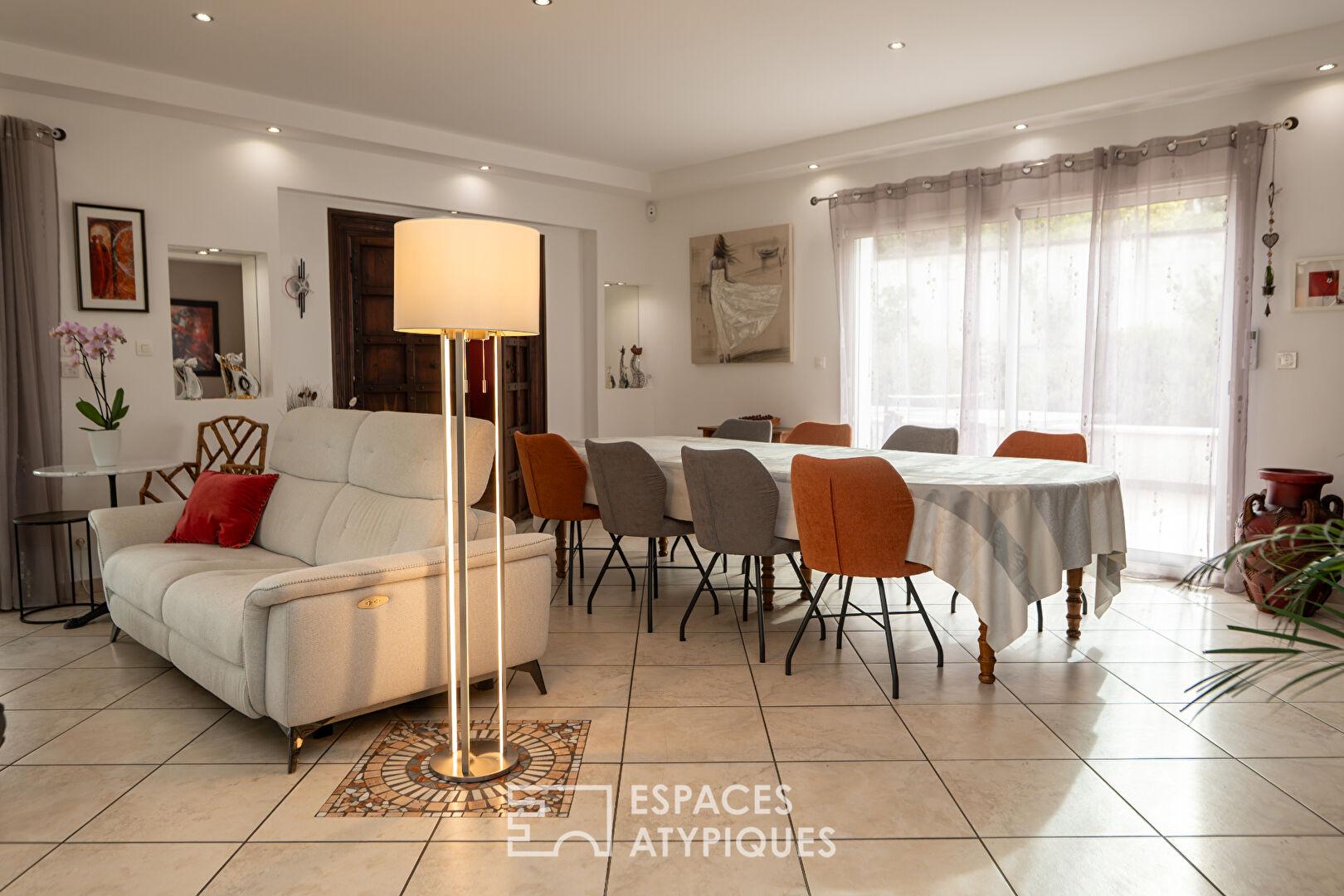 Cet immobilier atypique séduit par l’équilibre parfait entre volumes généreux et prestations techniques de pointe (DPE : B, pompe à chaleur, climatisation). Un lieu de vie hors norme qui n’attend qu’une nouvelle page d’histoire pour s’animer. Une visite s’impose pour saisir l’âme de cette villa dominante.