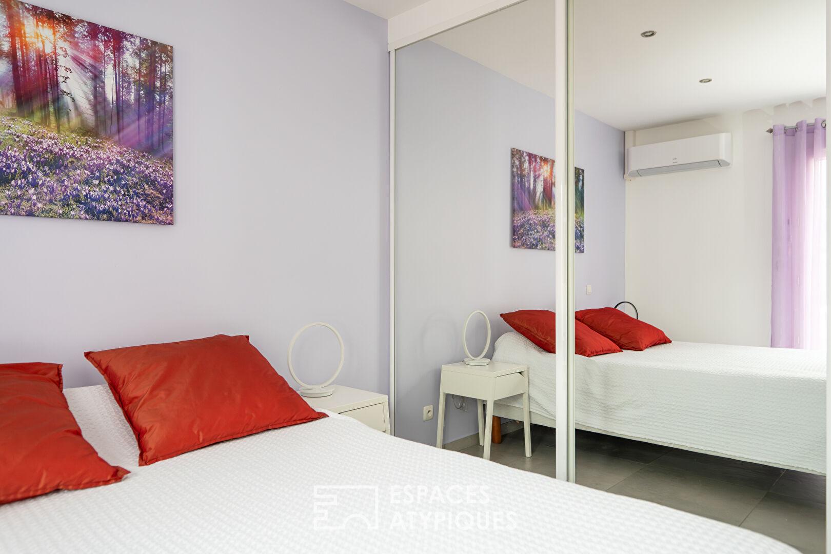 En rez-de-chaussée, un appartement indépendant de 100 m² avec cuisine, salon et chambre, complète cet ensemble, offrant une polyvalence rare pour un projet professionnel ou une hospitalité généreuse.