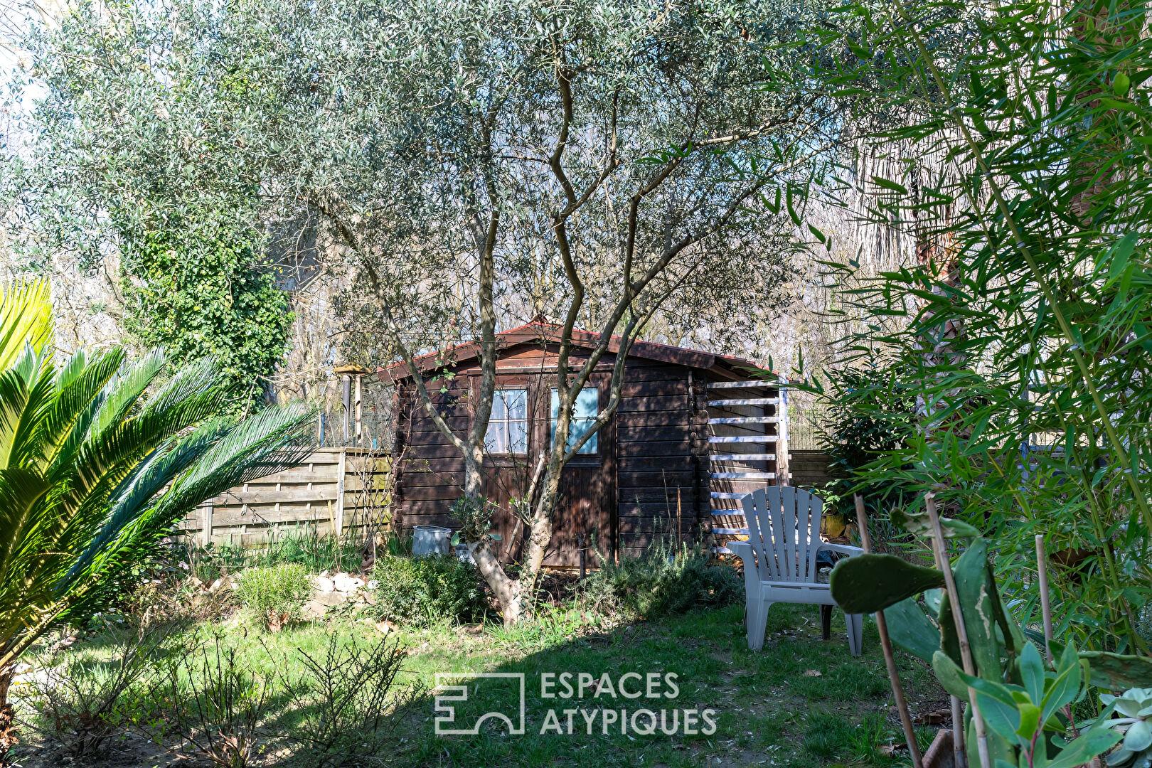 À l’extérieur, le jardin accueillant est soigneusement paysagé avec oliviers, palmiers et essences méditerranéennes, accompagné d’un petit chalet en bois pour le rangement du nécessaire d’entretien. La piscine installée sur une seconde terrasse opposée qui propose des zones de détente sans aucun vis-à-vis, créant un véritable cocon pour savourer les longues soirées d’été.