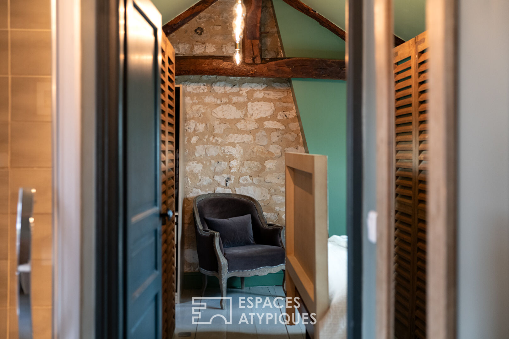 Un boudoir pour des moments intimistes et dans la continuité une salle à manger et son salon pour profiter de soirées au coin du feu.